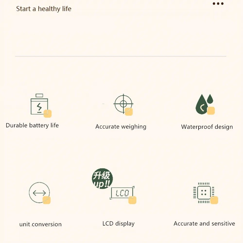 ميزان رقمي دقيقمستشعر عالي الدقة: قراءة دقيقة حتى 1 جرام.مدى الوزن: 5 كجم / 10 كجم.وظائف متعددة: تصفير يدوي، إيقاف تلقائي، تحويل الوحدات.تنبيه انخفاض البطارية والتحميل الزائد.التغذية: يعمل ببطاريتين AAA (غير مشمولتين).الشاشة: LCD واضحة.الأبعاد: 22×15×3 سم.محتويات العبوة: 1× ميزان إلكتروني.