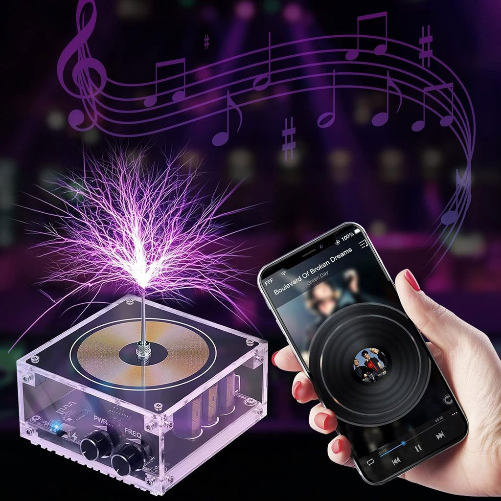 Bluetooth Mini Music Tesla Coil Kit,10 Cm Solid State Touchable Artificial Lightning