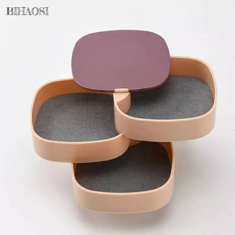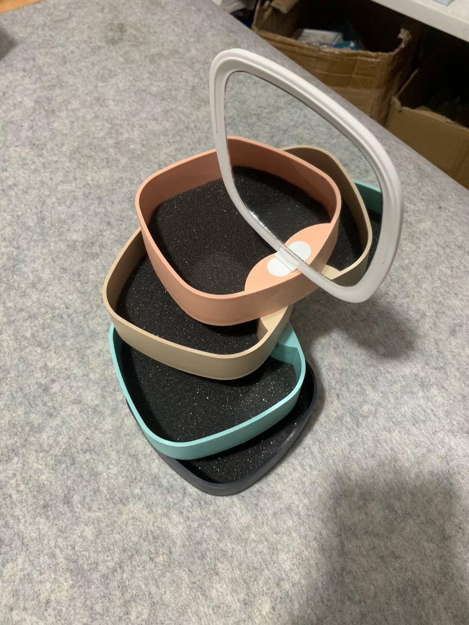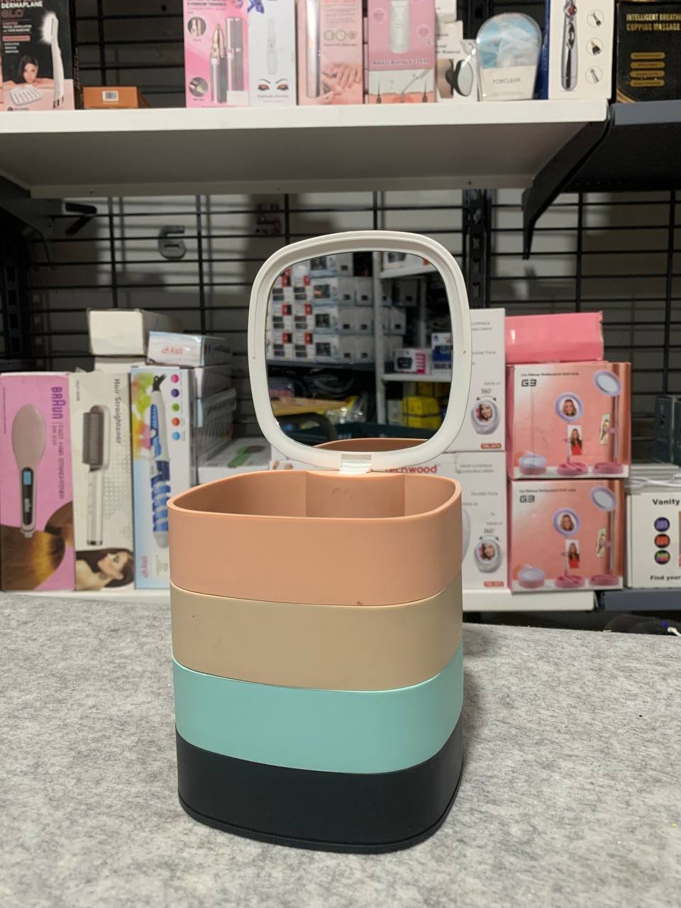 عرض المنتج: علبة مجوهرات متعددة الوظائف مع مرآة دوارةالمادة: ABSالوظائف: دوران، تصميم متعدد الطبقات مع تقسيم داخليالنمط: عصري وبسيطالأبعاد : 12x12cm.