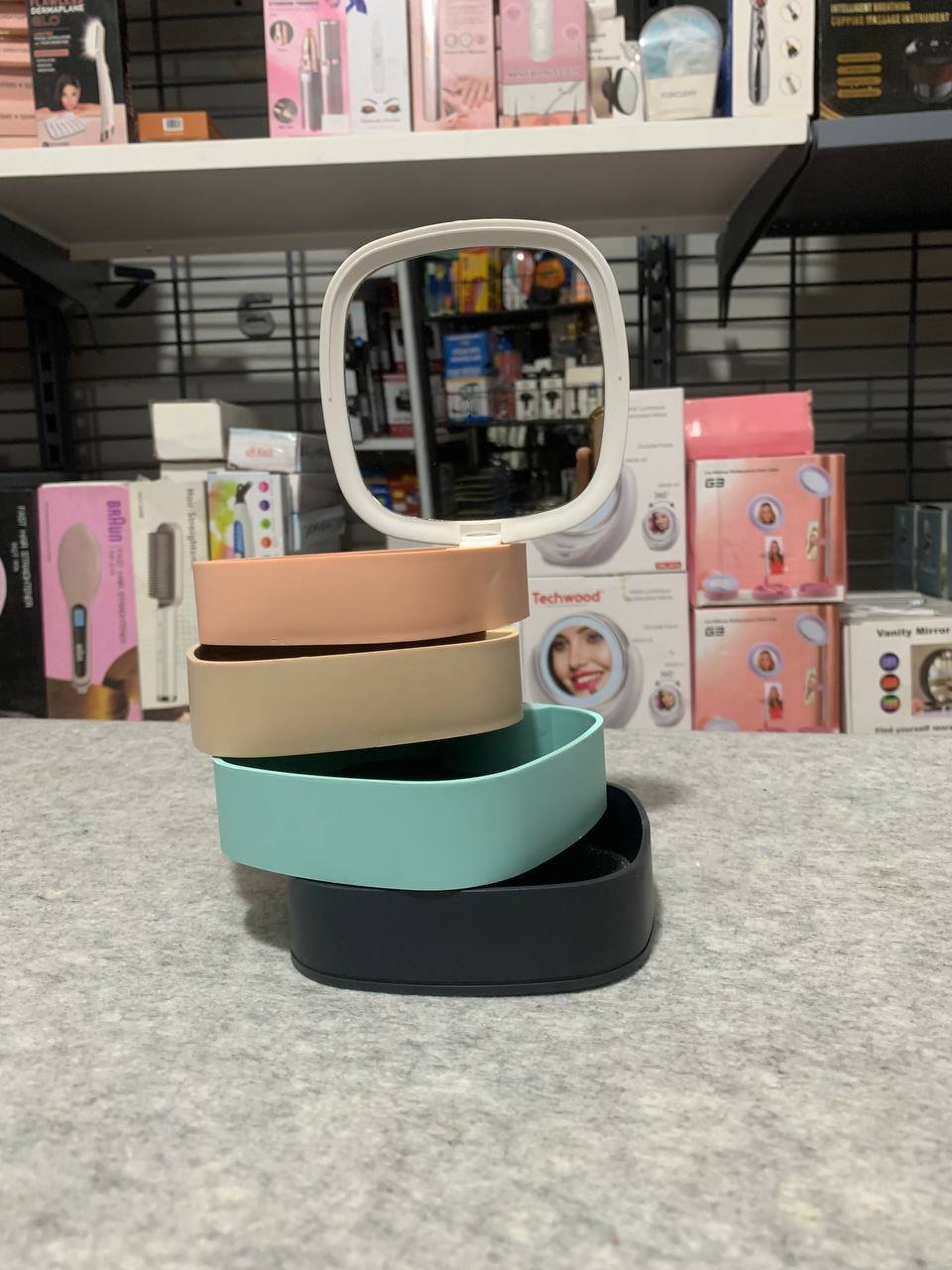 boîte de rangement pour bijoux multi-couches avec mirroir