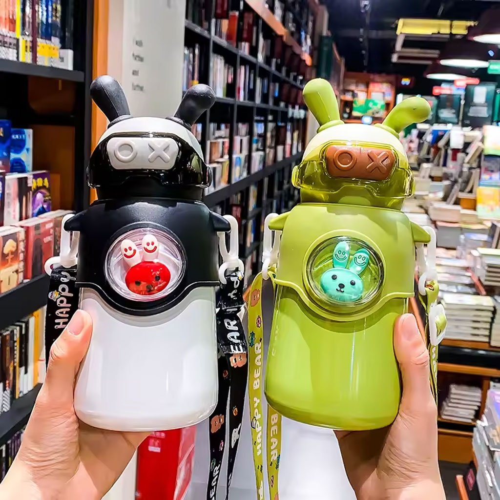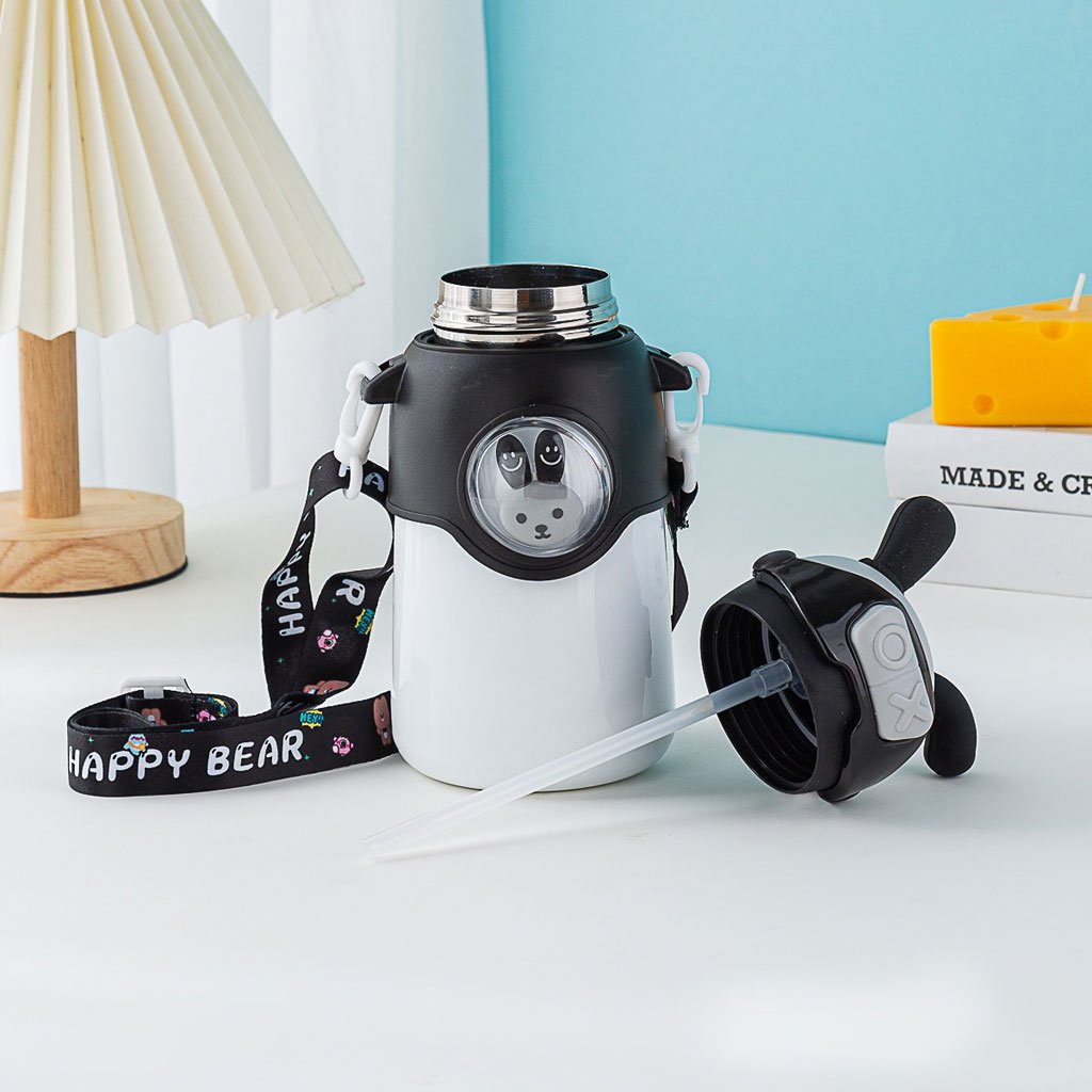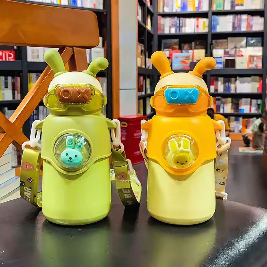 Bouteille Thermos en Acier Inoxydable 500 ml avec Paille, Motif Lapin pour Enfants