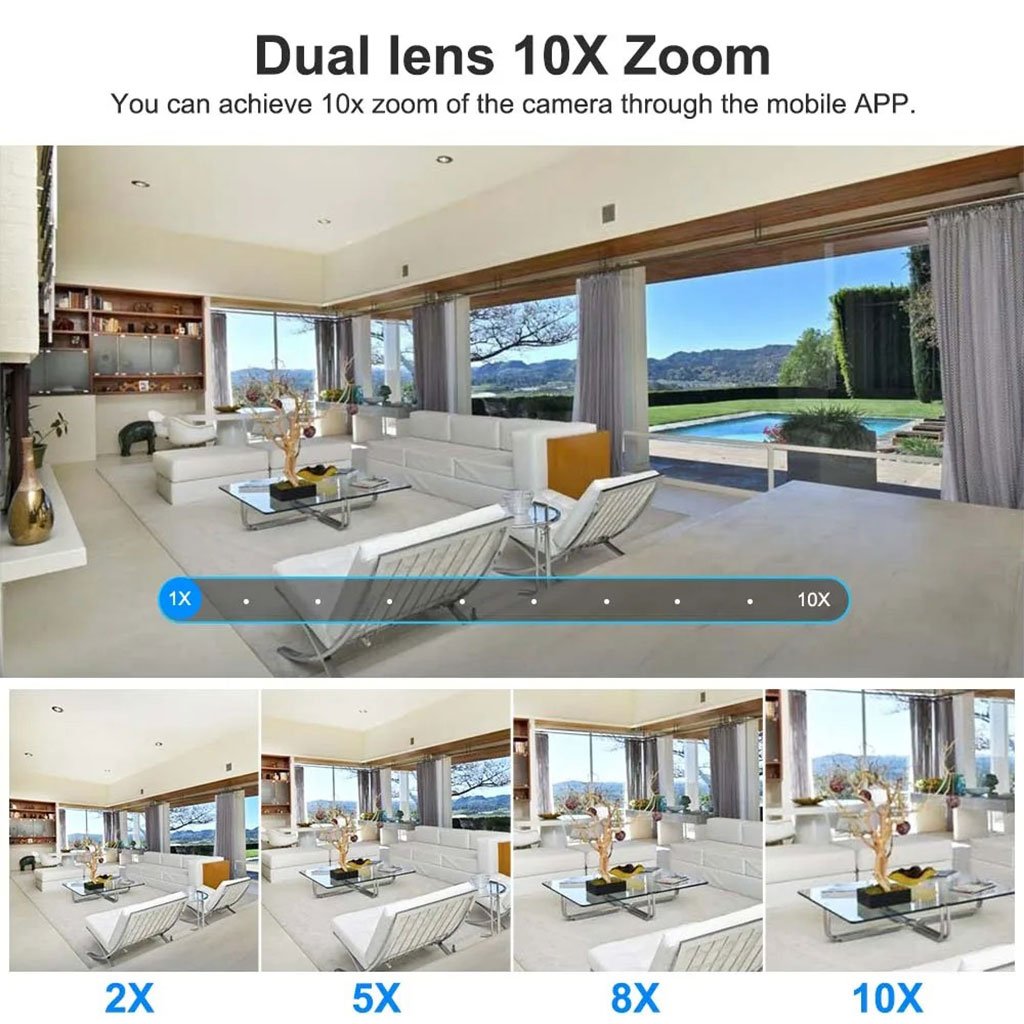 📸 كاميرا أمان ذكية بعدستين بدقة 2K✨ جودة صورة فائقةدقة 2K (كل عدسة بدقة 1080P) تمنحك وضوحًا مذهلًا في أدق التفاصيل.🔍 تكبير بصري 10Xعدستان مع ميزة الزوم البصري 10 مرات لرؤية الأجسام البعيدة بوضوح فائق دون فقدان الجودة.🎯 تتبع تلقائي للأشخاصعند اكتشاف أي حركة بشرية، تتبع الكاميرا الهدف تلقائيًا، تسجّل الفيديو، وترسل إشعارًا فوريًا.🤖 ذكاء اصطناعي للكشف البشريبمجرد رصد حركة بشرية، تُرسل الكاميرا تنبيهًا فوريًا عبر التطبيق.🌙 رؤية واضحة مع تفاصيل دقيقةتمنحك رؤية أوضح وأدق للأشياء البعيدة، لتستمتع بتجربة مراقبة لا تضاهيها المنتجات الأخرى في السوق.