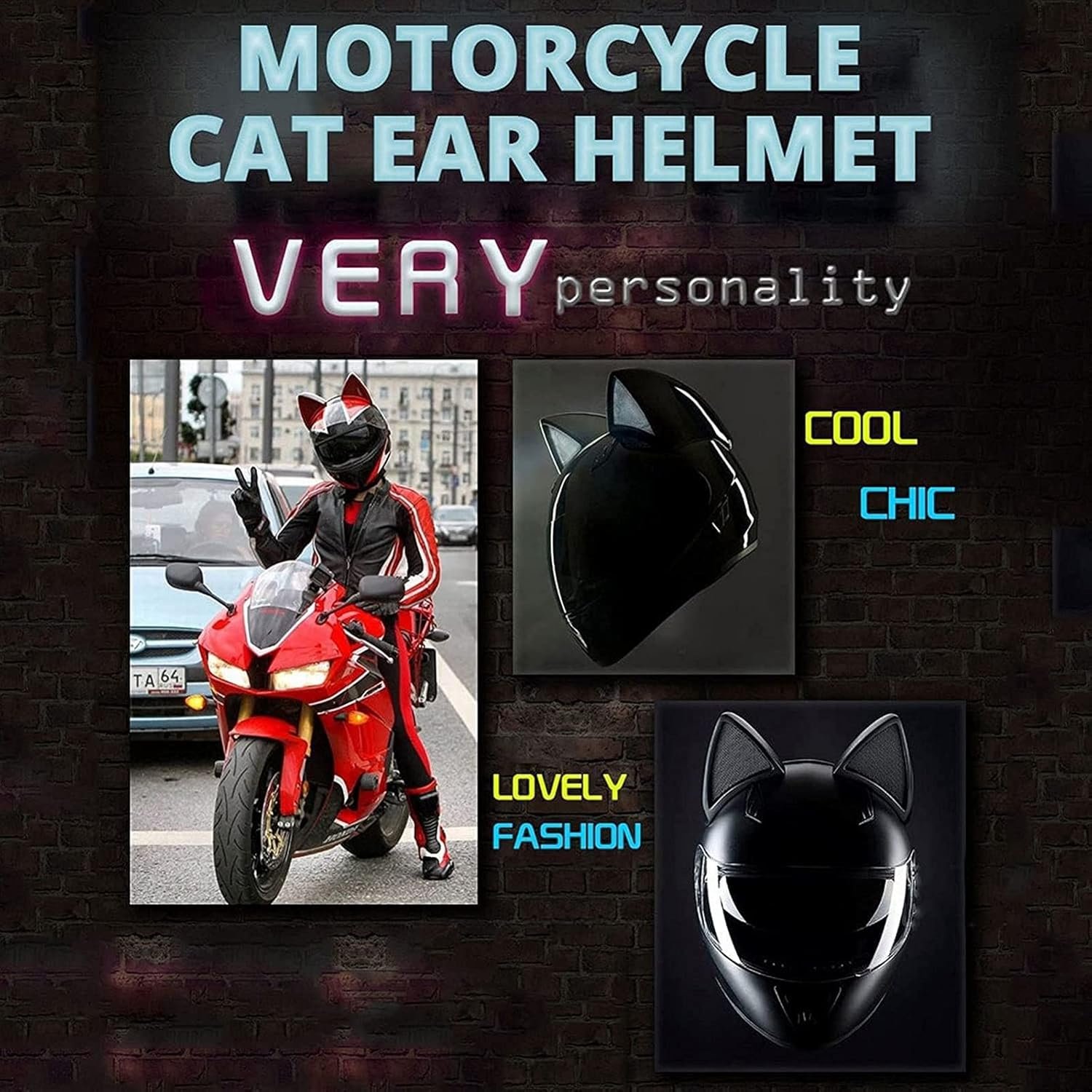 Casque de moto pour femme et fille avec oreilles de chat – خوذة احترافية للنساء