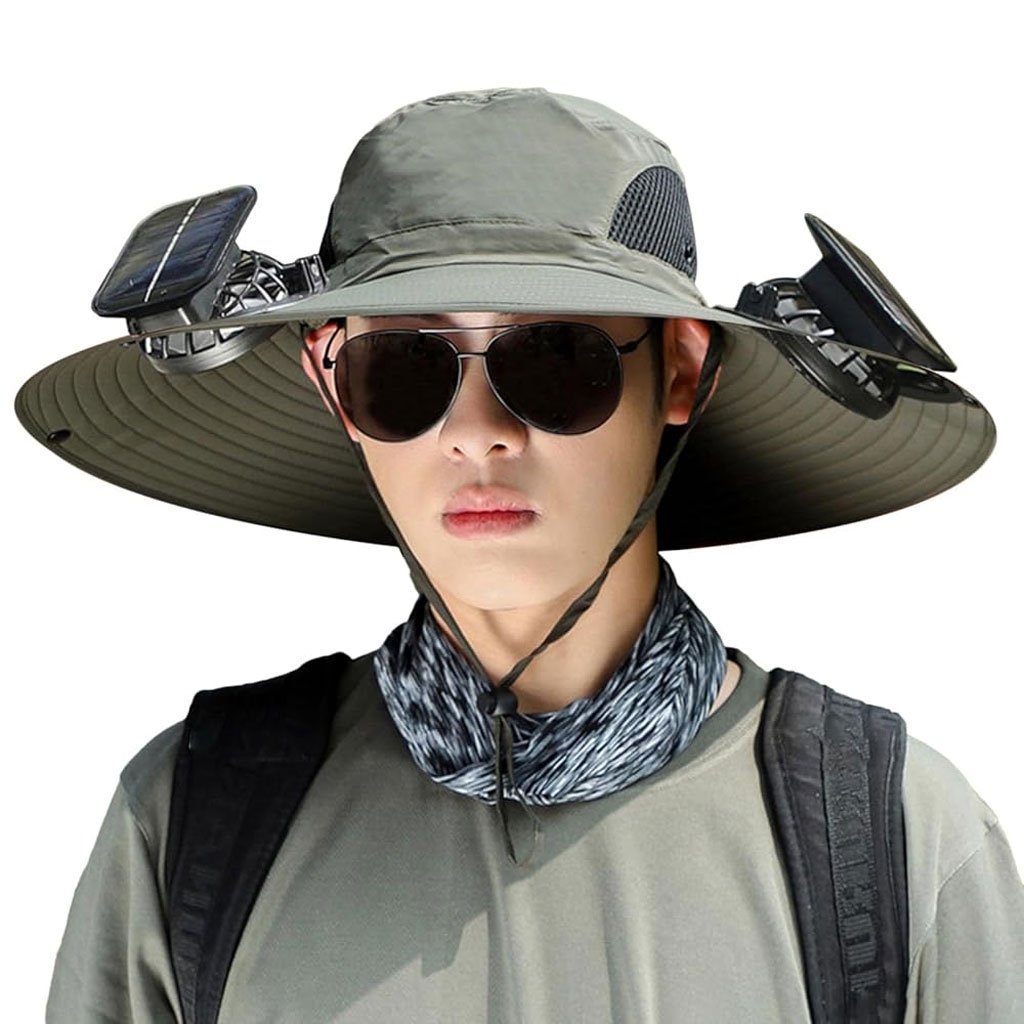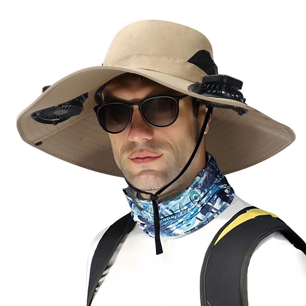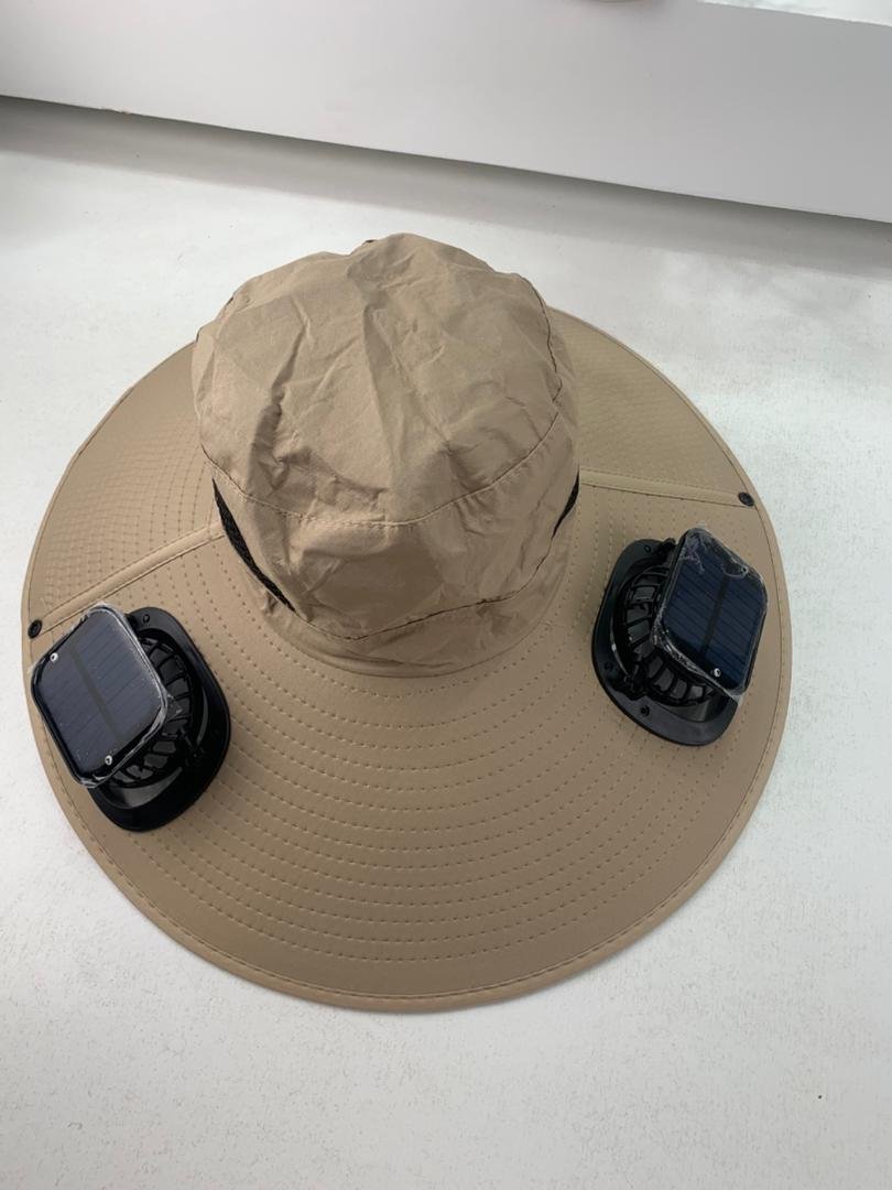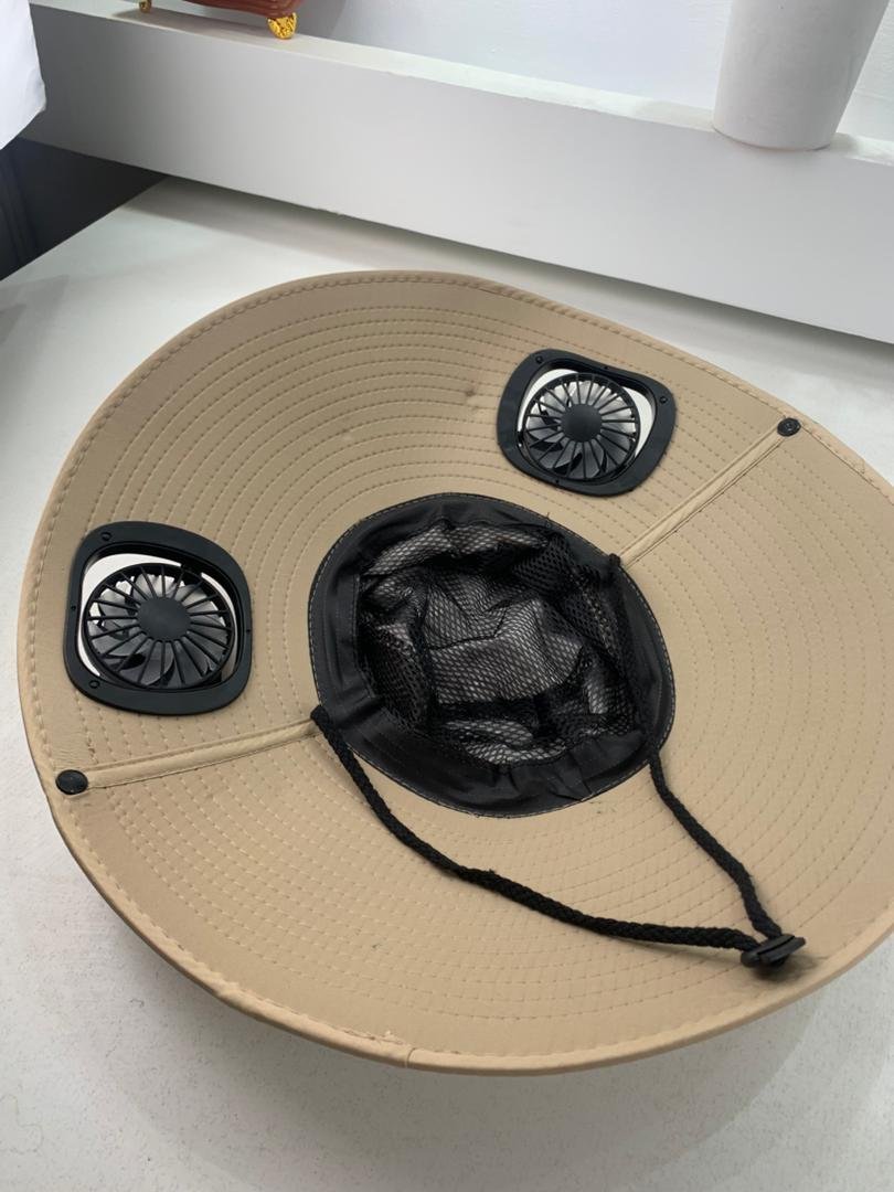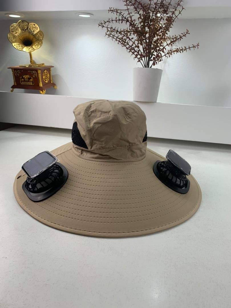 Chapeau de soleil à large bord avec double ventilateur – قبعة للحماية من الشمس مع مروحات