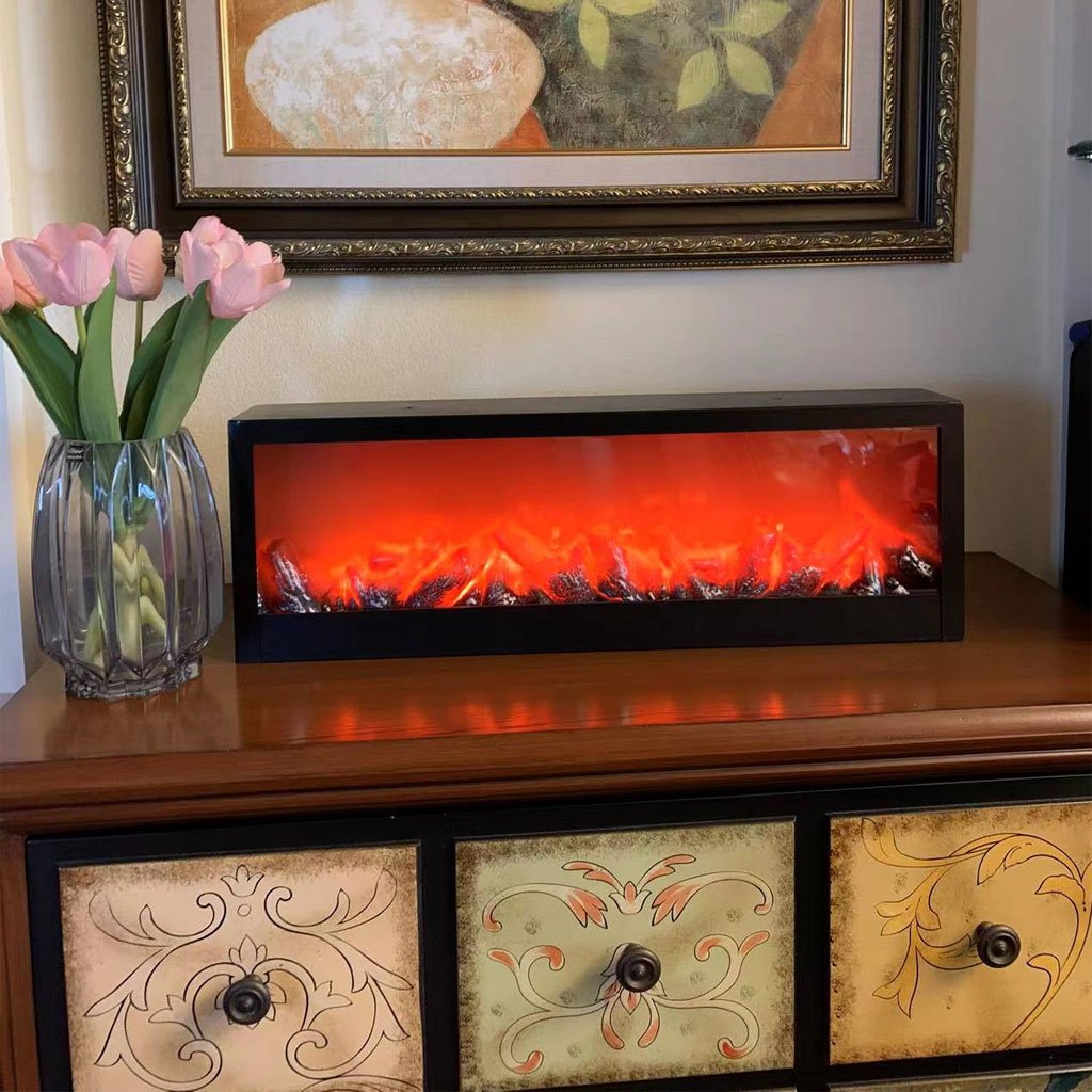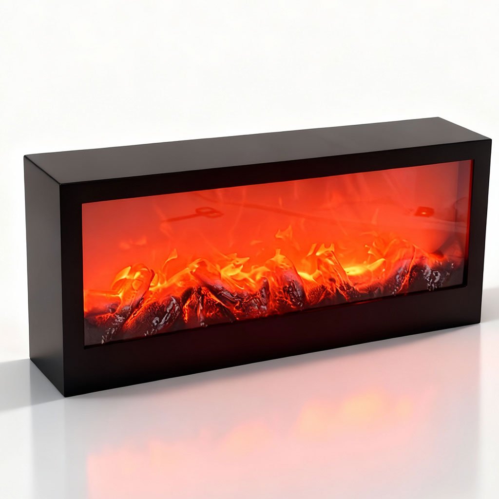 Cheminée LED décorative effet flammes forme rectangulaire