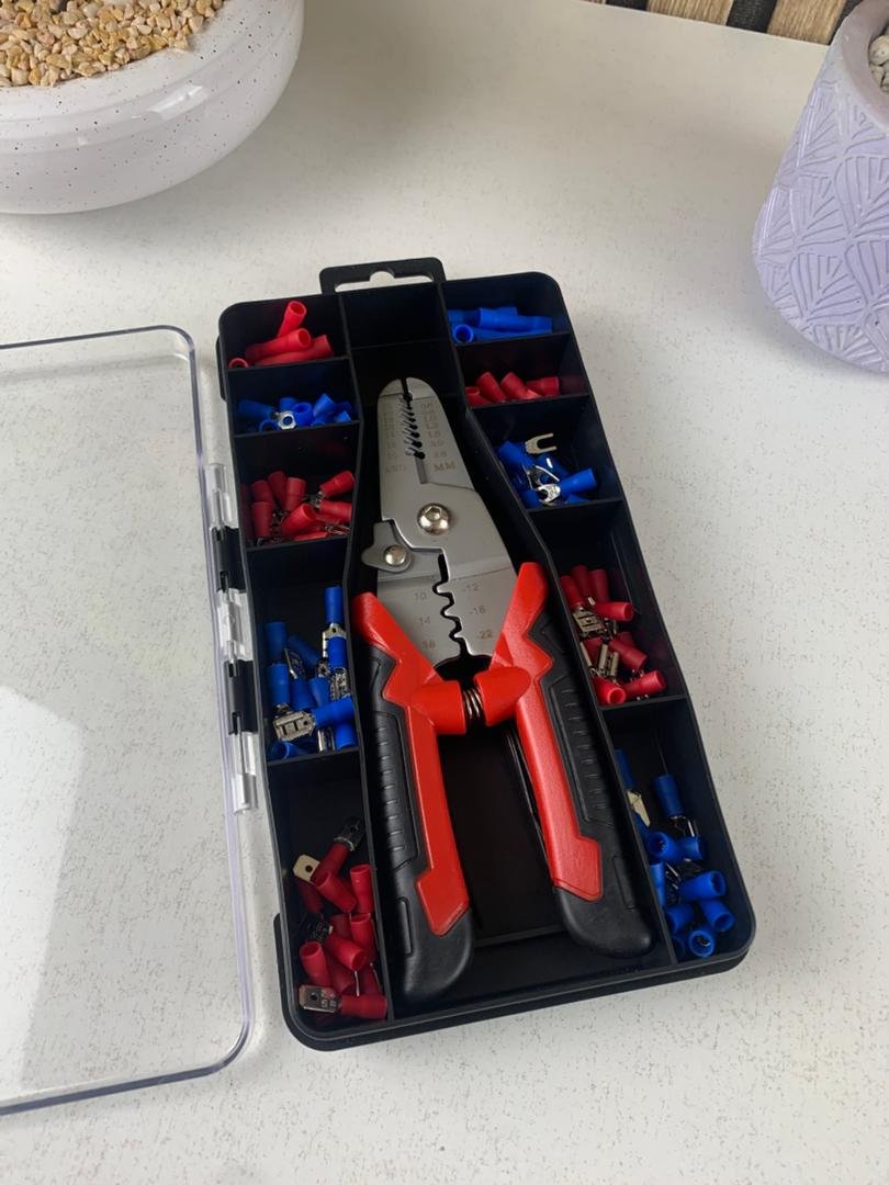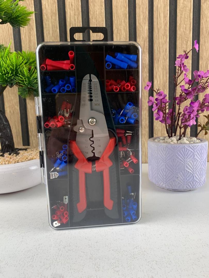 🔧 عدة تجعيد كهربائية احترافية – 170 قطعة متكاملة لكل مشاريعك الكهربائية 🔌⚡احصل على مجموعة شاملة تحتوي على كل الأدوات والملحقات التي تحتاجها لقص، تعرية، وتجعيد الأسلاك بكل سهولة واحترافية. مثالية للإصلاحات الكهربائية، المشاريع المنزلية، أو الأعمال الإلكترونية الدقيقة.🔹 ✅ مكونات العدة:🛠️ كماشة متعددة الوظائف للتجعيد والقص والتعرية:تقص وتعري الأسلاك بمقاسات 22 إلى 10 AWGمقبض مريح مصنوع من المطاط غير القابل للانزلاقميزة القفل الآمن لتخزين سهل وآمن🔌 🔴🔵 أنواع الوصلات المضمنة:وصلات دائرية (بعيون)وصلات مسطحة ذكَر وأنثىوصلات بشكل شوكةوصلات وصل بين الأسلاك (Couplers)وصلات كروية أنثى (Ball Femelle) – متوفرة باللون الأحمر فقطتأتي الألوان الحمراء والزرقاء لتسهيل التعرف على المقاسات وضمان اتصال قوي وآمن.🧩 ملحقات إضافية:أربطة تثبيت ذاتية القفل بطول 10 سم لتنظيم الأسلاكمشابك تثبيت بطول 14 سم للحفاظ على الترتيب والنظافة أثناء العمل💪 المميزات الرئيسية: ✔️ كماشة قوية ومريحة في الاستخدام ✔️ أدوات متعددة في قطعة واحدة (قص – تعرية – تجعيد) ✔️ متوافقة مع مجموعة واسعة من الأسلاك (22 إلى 10 AWG) ✔️ تحتوي على 170 قطعة متنوعة داخل علبة عملية ✔️ مثالية للإصلاحات الكهربائية والإلكترونية والمشاريع اليدوية (DIY)📦 محتويات العلبة:1 × كماشة تجعيد170 × وصلة متنوعةأربطة ومشابك تنظيم⚙️ الخلاصة: هذه العدة الكهربائية المتكاملة هي الخيار الأمثل لكل من يبحث عن الدقة، السرعة، والاحترافية في أعمال الكهرباء أو الإلكترونيات. 💼 عملية – متينة – شاملة، وتغنيك عن شراء أدوات منفصلة.✨ عدة واحدة، مئات الاستخدامات!