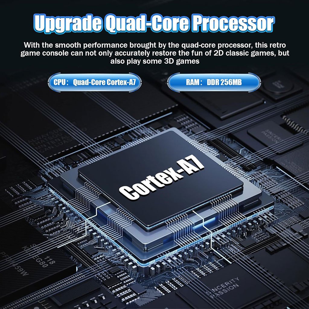 الوصف باللغة العربية بأسلوب تسويقي احترافي ومنظّم:🎮 جهاز الألعاب المحمولة M26 – مكتبة ألعاب ضخمة وتجربة لعب متكاملة استمتع بعالم الألعاب الكلاسيكية والحديثة في جهاز واحد، مع آلاف الألعاب الجاهزة وأداء قوي يناسب عشّاق الريترو والـ 3D على حدّ سواء 🔥🕹️ أكثر من 30,000 لعبة + 25 محاكي🎯 تضم أكثر من 30,000 لعبة كلاسيكية جاهزة للعب بدون تحميل🧩 تدعم 25 محاكيًا لأشهر أجهزة الألعاب الكلاسيكية🕶️ تشغيل ألعاب 3D عالية الدقة بسلاسة ممتازة🌍 دعم أكثر من 30 لغة مع إمكانية تغيير لغة النظام والألعاب بضغطة واحدة⚙️ نظام EmuELEC + أداء قوي💻 نظام تشغيل احترافي EmuELEC مستقر وسلس🚀 معالج رباعي النواة Cortex-A7 بسرعة تصل إلى 1.2GHz🧠 ذاكرة DDR بسعة 256MB لتحسين سرعة التحميل وتقليل التقطيع🎮 أداء موثوق لتعدد المهام وتشغيل الألعاب بسلاسة🖥️ شاشة IPS HD + إضاءة RGB مذهلة📺 شاشة IPS بقياس 5.1 بوصة🎨 دقة 800 × 480 مع ألوان زاهية وزاوية رؤية واسعة🌈 حلقة إضاءة RGB بـ 16 مليون لون✨ تأثيرات ضوئية ديناميكية تزيد من متعة اللعب والانغماس🔋 بطارية قوية + صوت نقي🔋 بطارية 3000mAh لجلسات لعب طويلة دون انقطاع🔊 سماعات احترافية 8 أوم / 1 واط🎧 صوت واضح ومؤثرات دقيقة لاندماج كامل في اللعبة💾 توسعة تخزين مرنة💽 دعم بطاقات TF بسعات 64GB / 128GB / 256GB📦 تخزين عدد هائل من الألعاب والملفات بسهولة🧩 اختر السعة المناسبة حسب احتياجك📦 محتويات العلبة:🎮 جهاز ألعاب محمول M26🔌 كابل شحن USB💾 بطاقة TF📘 دليل الاستعمال📦 علبة التغليف الأصلية📊 المواصفات التقنية:عدد الألعاب: 20,000 / 30,000 / 50,000 لعبةالنظام: EmuELECاللغات: أكثر من 30 لغةالمحاكيات: 25 نوعالمعالج: Quad-Core Cortex-A7 (حتى 1.2GHz)الذاكرة: 256MB DDRالشاشة: IPS 5.1 بوصةالبطارية: 3000mAhالطاقة: 5V 2Aالاستهلاك: 600mAالأبعاد: 20 × 10 × 2 سم✨ لماذا تختار M26؟ ✔️ مكتبة ألعاب ضخمة بدون تحميل ✔️ أداء قوي وشاشة مريحة للعين ✔️ تصميم جذاب بإضاءة RGB ✔️ مثالية للأطفال والكبار ومحبي ألعاب الريتروالوصف باللغة العربية بأسلوب تسويقي احترافي ومنظّم:🎮 جهاز الألعاب المحمولة M26 – مكتبة ألعاب ضخمة وتجربة لعب متكاملة استمتع بعالم الألعاب الكلاسيكية والحديثة في جهاز واحد، مع آلاف الألعاب الجاهزة وأداء قوي يناسب عشّاق الريترو والـ 3D على حدّ سواء 🔥🕹️ أكثر من 30,000 لعبة + 25 محاكي🎯 تضم أكثر من 30,000 لعبة كلاسيكية جاهزة للعب بدون تحميل🧩 تدعم 25 محاكيًا لأشهر أجهزة الألعاب الكلاسيكية🕶️ تشغيل ألعاب 3D عالية الدقة بسلاسة ممتازة🌍 دعم أكثر من 30 لغة مع إمكانية تغيير لغة النظام والألعاب بضغطة واحدة⚙️ نظام EmuELEC + أداء قوي💻 نظام تشغيل احترافي EmuELEC مستقر وسلس🚀 معالج رباعي النواة Cortex-A7 بسرعة تصل إلى 1.2GHz🧠 ذاكرة DDR بسعة 256MB لتحسين سرعة التحميل وتقليل التقطيع🎮 أداء موثوق لتعدد المهام وتشغيل الألعاب بسلاسة🖥️ شاشة IPS HD + إضاءة RGB مذهلة📺 شاشة IPS بقياس 5.1 بوصة🎨 دقة 800 × 480 مع ألوان زاهية وزاوية رؤية واسعة🌈 حلقة إضاءة RGB بـ 16 مليون لون✨ تأثيرات ضوئية ديناميكية تزيد من متعة اللعب والانغماس🔋 بطارية قوية + صوت نقي🔋 بطارية 3000mAh لجلسات لعب طويلة دون انقطاع🔊 سماعات احترافية 8 أوم / 1 واط🎧 صوت واضح ومؤثرات دقيقة لاندماج كامل في اللعبة💾 توسعة تخزين مرنة💽 دعم بطاقات TF بسعات 64GB / 128GB / 256GB📦 تخزين عدد هائل من الألعاب والملفات بسهولة🧩 اختر السعة المناسبة حسب احتياجك📦 محتويات العلبة:🎮 جهاز ألعاب محمول M26🔌 كابل شحن USB💾 بطاقة TF📘 دليل الاستعمال📦 علبة التغليف الأصلية📊 المواصفات التقنية:عدد الألعاب: 20,000 / 30,000 / 50,000 لعبةالنظام: EmuELECاللغات: أكثر من 30 لغةالمحاكيات: 25 نوعالمعالج: Quad-Core Cortex-A7 (حتى 1.2GHz)الذاكرة: 256MB DDRالشاشة: IPS 5.1 بوصةالبطارية: 3000mAhالطاقة: 5V 2Aالاستهلاك: 600mAالأبعاد: 20 × 10 × 2 سم✨ لماذا تختار M26؟ ✔️ مكتبة ألعاب ضخمة بدون تحميل ✔️ أداء قوي وشاشة مريحة للعين ✔️ تصميم جذاب بإضاءة RGB ✔️ مثالية للأطفال والكبار ومحبي ألعاب الريترو
