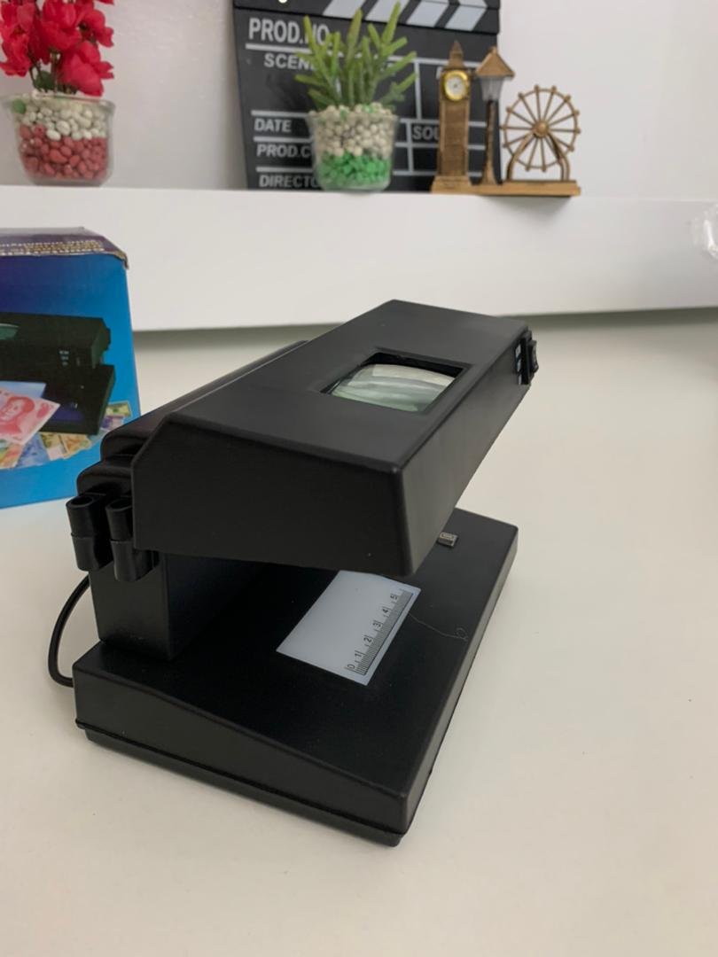 Alimentation : 220 V 50~60 Hz m110 V 50~60 Hz Consommation électrique : < 10 W Taille : 190 x 130 x 140 mmIl dispose de 2 types de lumières : la lumière UV, la lumière blanche et pour vérifier tout type de documents et de notes.Ayant un tube UV de marque Power – 9W, un tube blanc – 9W + (LUMIÈRE UV ET LUMIÈRE BLANCHE)Corps en métal avec revêtement en poudre, ?Utilisez-le pour vérifier les billets de banque, les passeports, les documents, les documents de location, etc.Convient à la détection de fausse monnaie de tout type de devises dans le monde entier