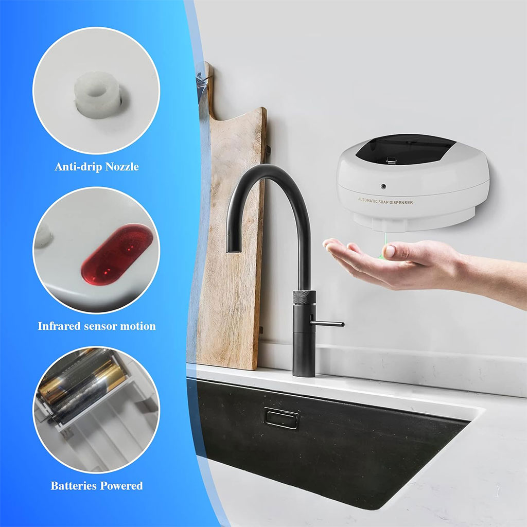 🧼 استشعار أوتوماتيكي بدون لمس – نظافة مضمونة وصحية.💧 سعة كبيرة (600 مل) تكفي لفترات طويلة.⚪ تصميم أنيق باللون الأبيض يناسب مختلف الديكورات.🔧 تركيب جداري ثابت مع إمكانية إزالة الموزع بسهولة.🪶 وزن خفيف (450 غرام) مع متانة عالية.💡 صرف دقيق بكمية 1 مل لكل استخدام.📌 طريقة التثبيت :