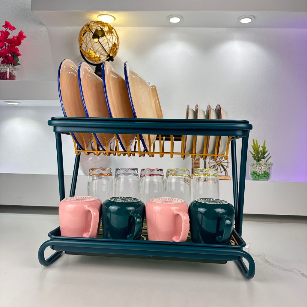 رف تجفيف يوفر مساحة تخزين أكبر بفضل تصميمه المكون من مستويين، لتجفيف وتنظيم الأطباق والأكواب وأدوات المطبخ بكفاءة.