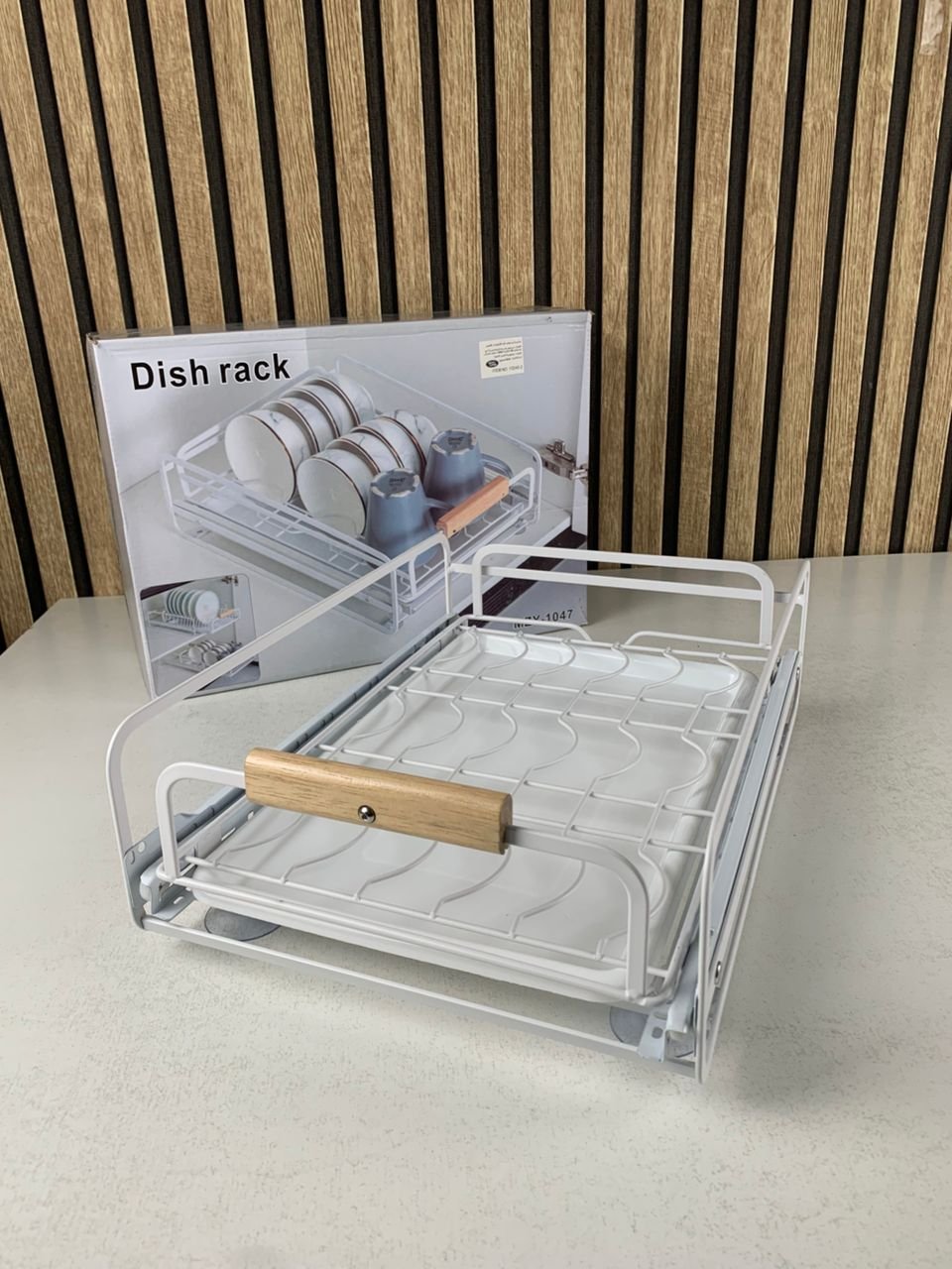 Égouttoir à vaisselle avec poignées en bois pour cuisine – منظم أواني داخل رف المطبخ