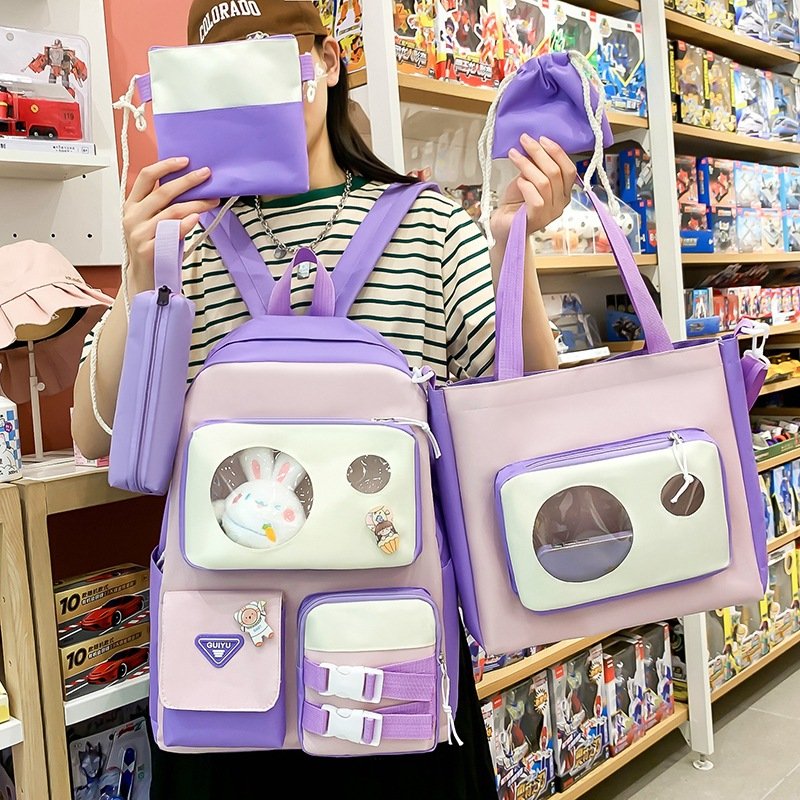 Ensemble de sacs d’école Kawai pour adolescents 5Pcs Guiyu V2 Mauve – محفظة 5 قطع كاواي بنفسجي