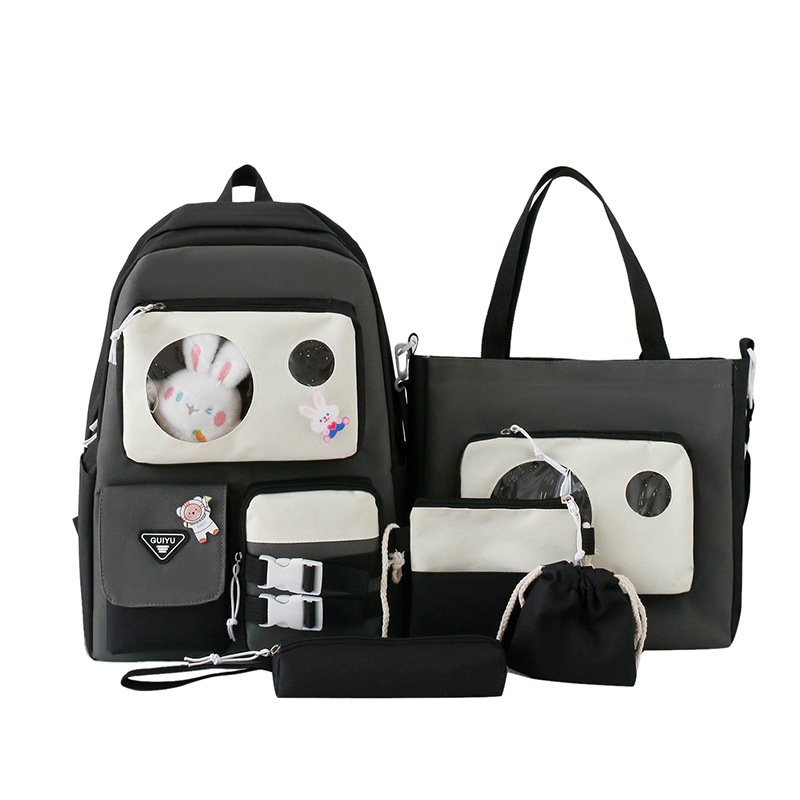 Ensemble de sacs d’école Kawai pour adolescents 5Pcs Guiyu V2 Noir et Gris– محفظة 5 قطع كاواي أسود ورمادي