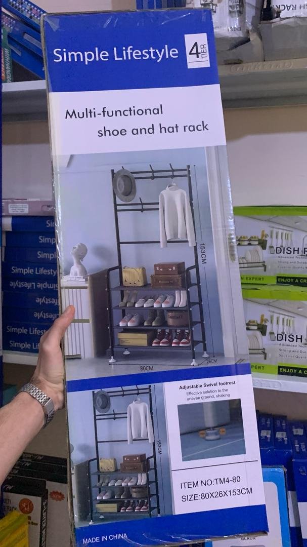 Étagère De Chaussures et Porte-manteau 4 Étages crochets – رف أحذية ومعاطف مع خطافات من 4 طبقات
