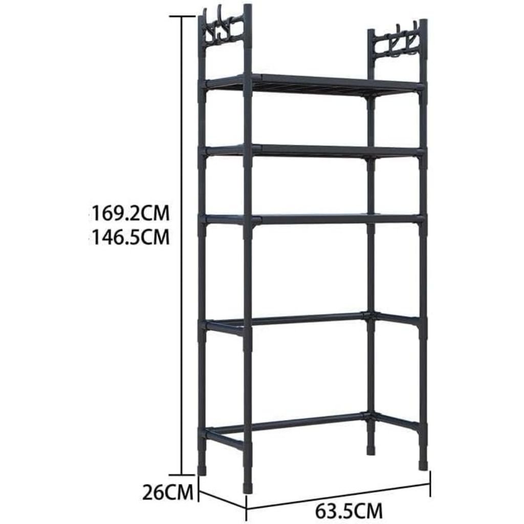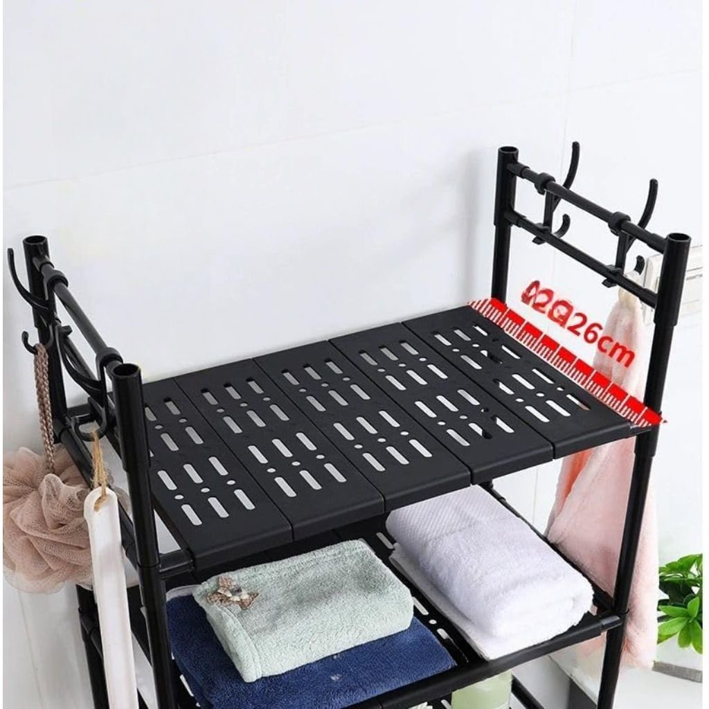 رف تخزين علوي بثلاثة مستويات – حل مثالي لتنظيم الحمامتحسين المساحة: تصميم رأسي لوضعه فوق المرحاض أو الغسالة.ثلاثة رفوف واسعة: لتنظيم أدوات الحمام أو التنظيف بسهولة.خطافات جانبية عملية: لتعليق المناشف أو الملحقات.بناء متين: خامات عالية الجودة لضمان الثبات والمتانة.تركيب سهل: مزود بكافة الأدوات والتعليمات الواضحة. حل عملي وأنيق للحفاظ على حمامك منظمًا ومرتبًا.