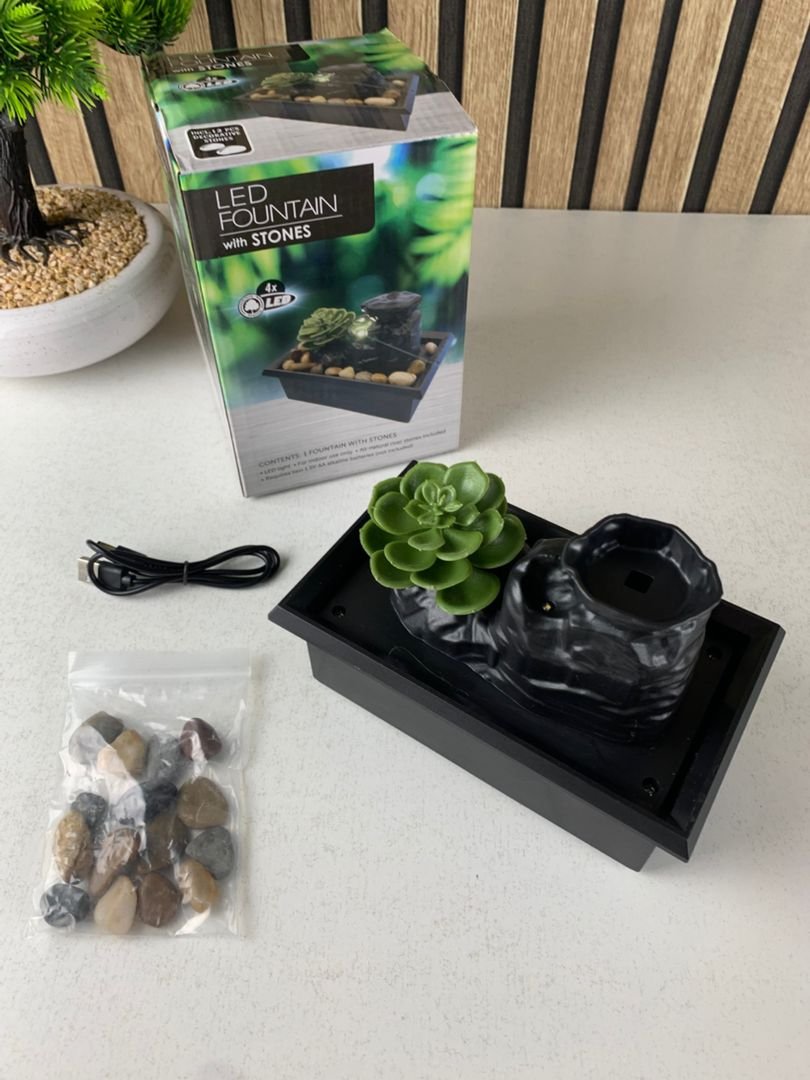 💧 نافورة مكتب صغيرة USB — لمسة هدوء وأناقة في أي مساحة1️⃣ تصميم أنيق ومريح للأعصابحسّن أجواء مكتبك أو مساحة عملك مع هذه النافورة الصغيرة التي تعمل عبر USB. صوت الماء المتدفّق يخلق جوًا مريحًا يساعدك على الاسترخاء وزيادة الإنتاجية.2️⃣ جلب الرزق والطاقة الإيجابيةتم تصميم هذه النافورة لتكون رمزًا للوفرة والازدهار، حيث يرمز تدفق المياه إلى تدفق المال. أما إضاءة الـLED فتضيف إحساسًا بالتفاؤل والراحة في المكان.3️⃣ إضاءة LED دافئة وجميلةالإضاءة المدمجة تُنير المياه بشكل رائع، مما يضيف توهجًا دافئًا ومظهرًا جذابًا على مكتبك أو غرفتك.4️⃣ أحجار تزيينية طبيعيةتأتي النافورة مع كيس من الحصى غير المنتظم، مما يعطي مظهرًا طبيعيًا أكثر ويضيف لمسة جمال لأي زاوية في المنزل أو المكتب.5️⃣ متعددة الاستخدامات وملائمة لأي مكانبفضل حجمها الصغير، يمكن وضعها في غرفة النوم، الصالون، المكتب، طاولة القهوة أو حتى رف التلفاز—قطعة ديكور بسيطة لكنها تغيّر الجو بالكامل.📌 المواصفات التقنيةالنوع: نافورة مياه مكتبية USBملاحظة: تأتي مع كيس حصى غير منتظم (الكمية قد تختلف)التغذية: Type-C، كابل USB، طاقة 5Vالاستخدامات: غرفة المعيشة، غرفة النوم، المكتب، طاولة القهوة، ديكور التلفازالحجم: تقريبًا 178 × 108 × 120 مم (7.0 × 4.3 × 4.7 إنش)الوزن: حوالي 511 غالإضاءة: LED بلون أصفر دافئ⚙️ طريقة الاستخدامأضِف كمية مناسبة من الماء.قم بتوصيل كابل USB.شغّل المفتاح واستمتع بصوت الماء ودفء الإضاءة ✨📦 محتوى العبوة1 × كيس أحجار تزيينية1 × دليل الاستخدام1 × كابل USB1 × نافورة مياه مكتبية