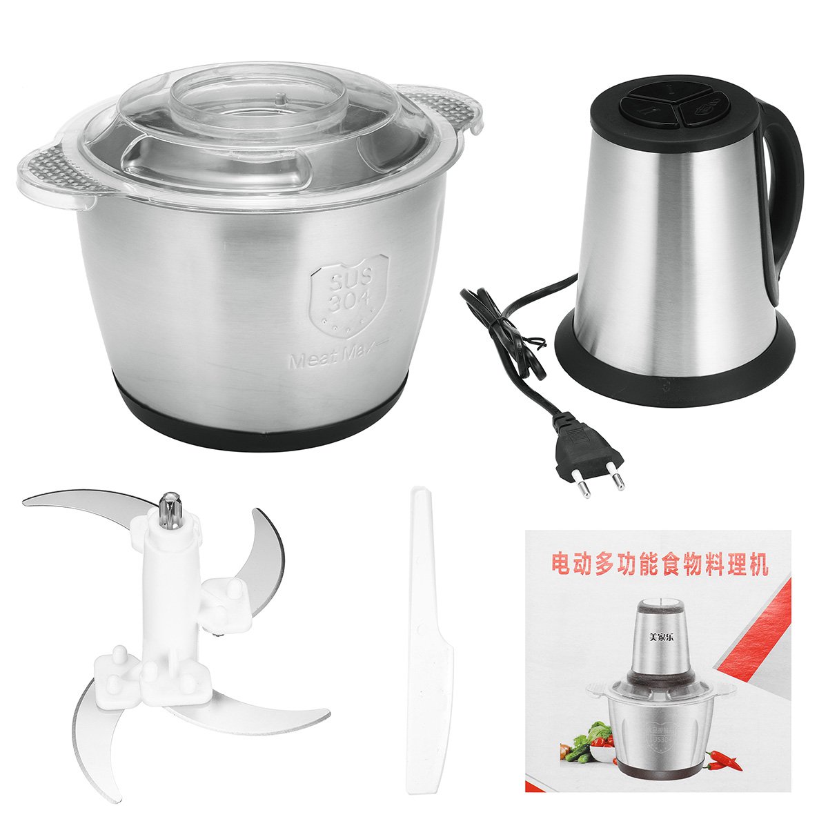Hachoir à viande électrique 2L en acier inoxydable