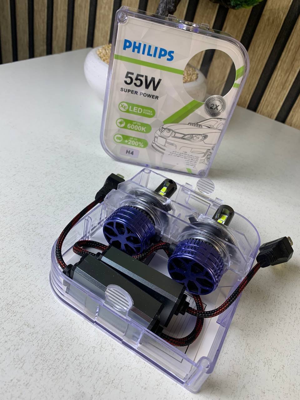 Kit Lampe de phare LED H4 Philips 6000K-16000LM Ultra Puissant – مصابيح إضاءة أمامية للسيارات