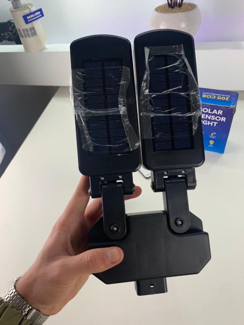 مصابيح شمسية فائقة السطوع – مصنوعة من ABS + PC عالي الجودة، مزودة بـ 200 حبة LED لتوفير إضاءة قوية لمساحات واسعة مع استهلاك منخفض للطاقة. 3 أوضاع إضاءة + تحكم عن بعد –الوضع 1: إضاءة عالية عند استشعار الحركة، ثم متوسطة بعد 20 ثانية.الوضع 2: إضاءة عالية عند استشعار الحركة، ثم إيقاف بعد 20 ثانية.الوضع 3: إضاءة مستمرة في الظلام. رأس إضاءة قابل للتعديل + زاوية واسعة – دوران عمودي حتى 90° وأفقي حتى 180° لتغطية أكبر. مقاومة للماء IP65 – تتحمل الظروف الجوية القاسية مع شحن شمسي من 6 إلى 8 ساعات لعمل يصل إلى 10 ساعات. تركيب سهل – يمكن تثبيتها مباشرة على الجدار أو العمود باستخدام البراغي المرفقة.