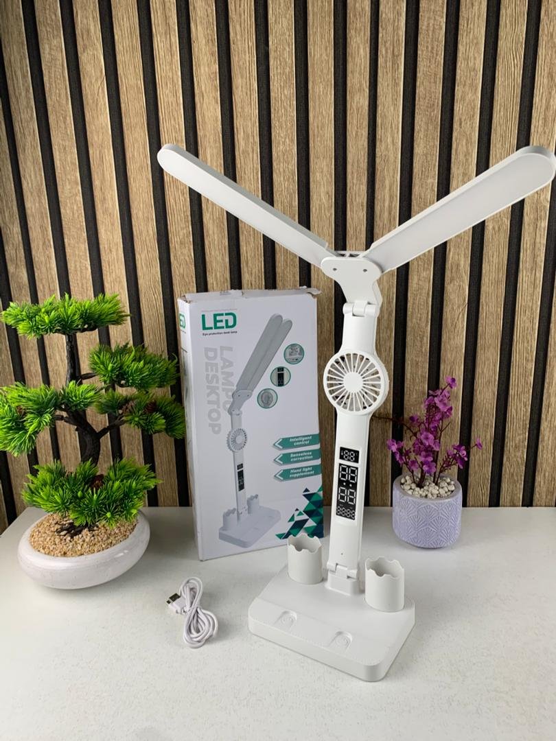Lampe de bureau LED à double tête avec ventilateur et Horloge – مصباح مكتب مع منبه ومروحة مدمجة
