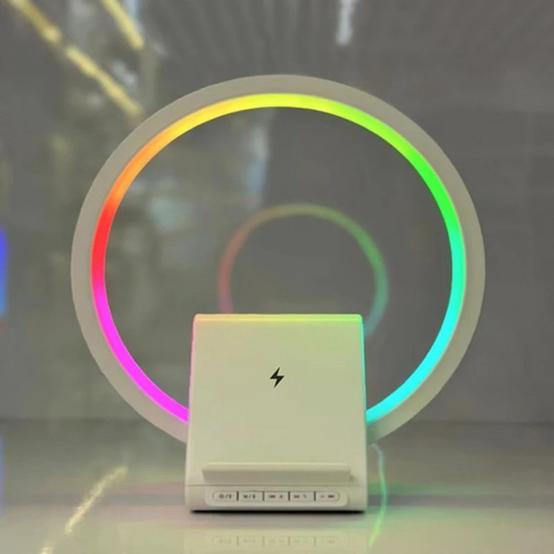سماعة بلوتوث مع إضاءة محيطية وشحن لاسلكي (موديل BT-258)الصوت: سماعة 52 مم، قدرة 5 واط، تردد 120Hz ~ 18kHz مع مشع بيس إضافي.البطارية: 1500mAh (ليثيوم 18650)، شحن خلال ساعتين، تشغيل 2–3 ساعات.الإضاءة: 6 ألوان قابلة للتغيير (RGB ×32 LED) مع عمر يتجاوز 20000 ساعة.التحكم: 4 أزرار لمس للتحكم بالصوت، التشغيل، التقديم والتأخير، مع زر مستقل للتحكم بالإضاءة.الشحن: USB DC5V-2A أو شحن لاسلكي (Qi) متوافق مع 5W/7.5W/10W/15W.