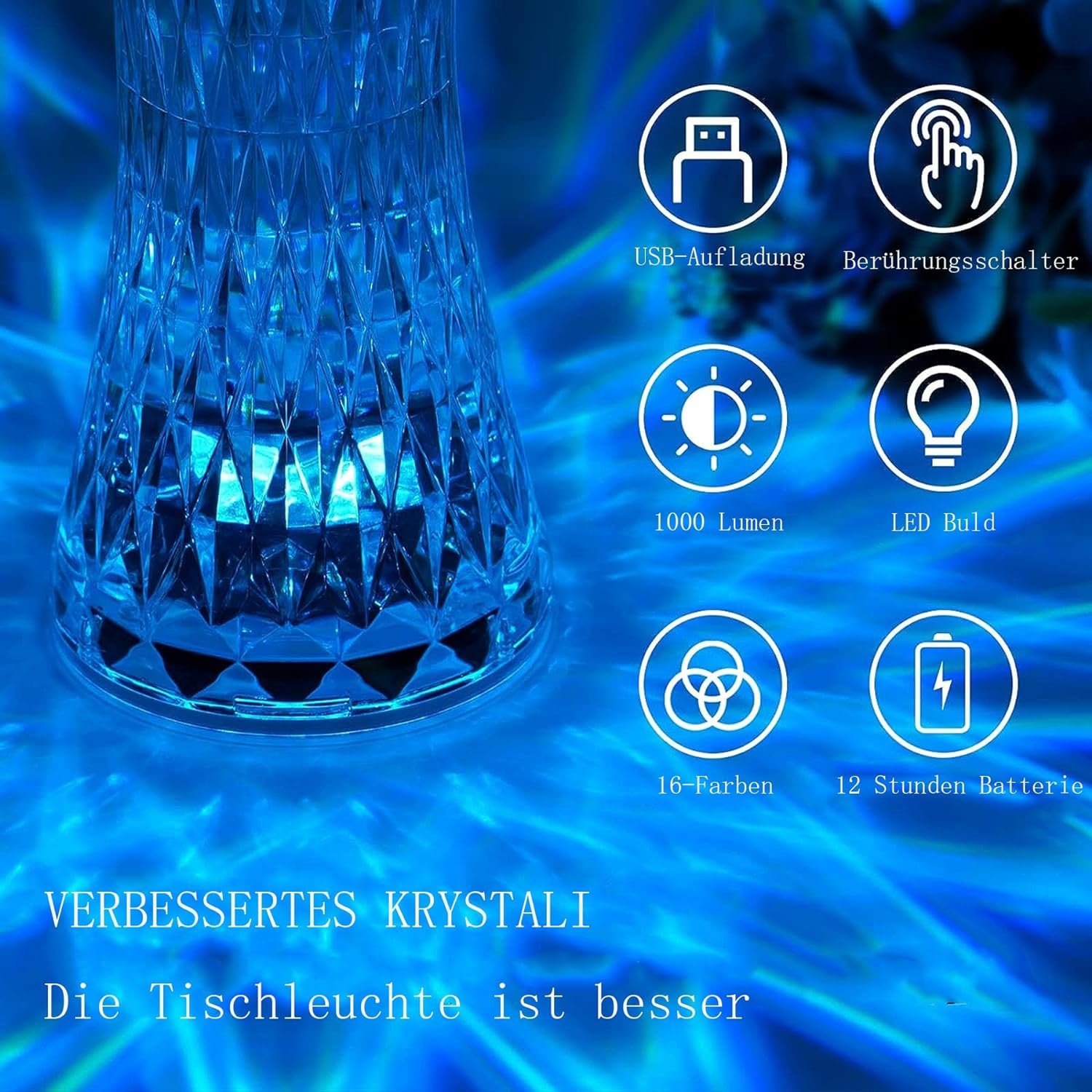 lampe de table en cristal sans fil Tactile Rgb pour chambre