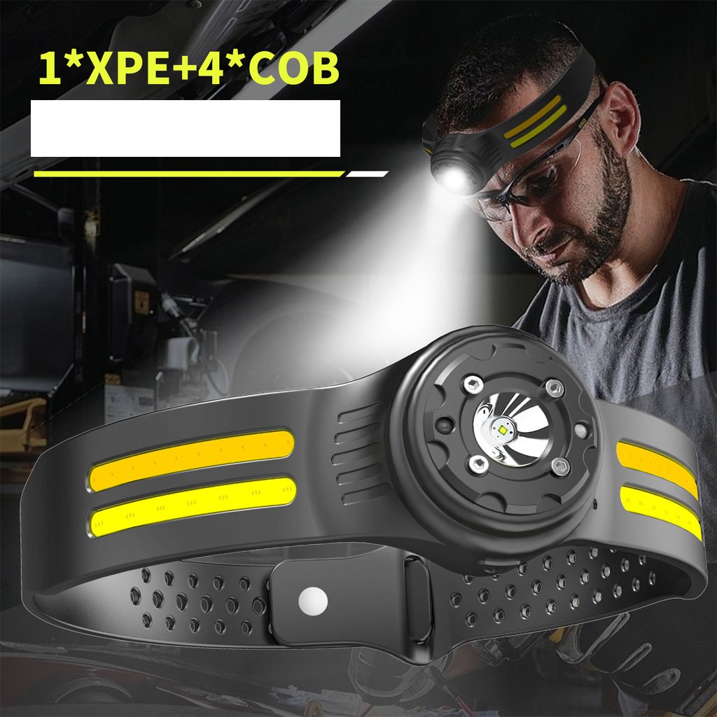 Lampe Frontale Légère COB avec Interrupteur Sensoriel à Angle Réglable
