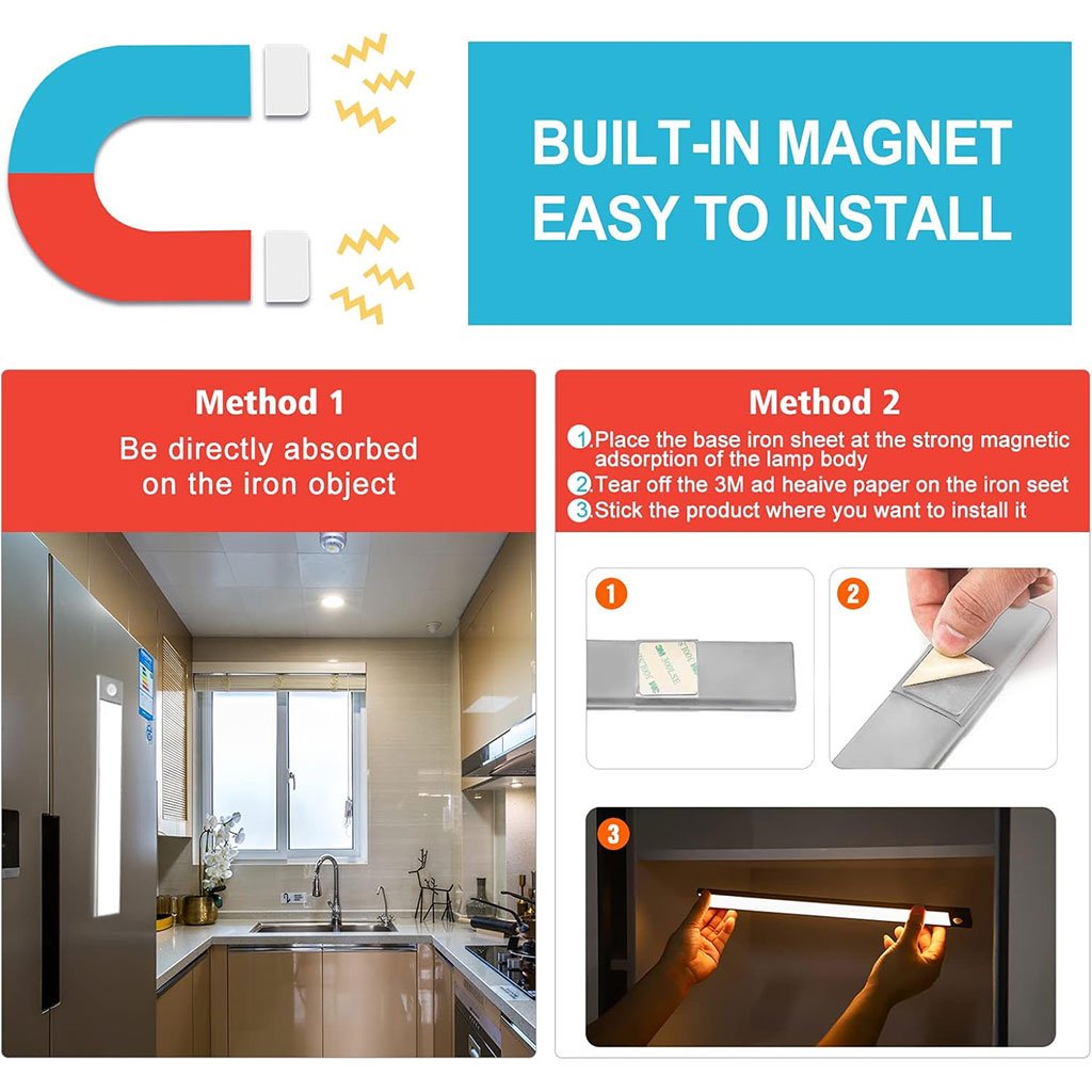 💡 مصباح LED مبتكر بخاصية الاستشعار【تصميم إضاءة مبتكر】 يتميّز هذا المصباح بخاصية “تأثير التلّ”، حيث تخلق حبات LED المبتكرة شعاعًا ضوئيًا مقوسًا يحاكي شكل التلال، مما يمنحك تأثيرًا بصريًا فريدًا وجذابًا حسب مكان التركيب.【3 ألوان وضبط سهل للإضاءة】 يقدّم المصباح ثلاث درجات مختلفة من حرارة اللون: الأبيض الدافئ (3000K)، الأبيض الطبيعي (4500K)، والأبيض البارد (6500K). يمكنك التبديل بينها بسهولة. كما يمكنك تعديل شدة الإضاءة حسب رغبتك من 5% إلى 100% (ما بين 100 و300 لومن).【3 أوضاع تشغيل تلائم جميع احتياجاتك】 ① وضع الاستشعار: يشتغل تلقائيًا عند اكتشاف حركة ضمن 3 أمتار / بزاوية 120° في بيئة مظلمة، وينطفئ بعد 25 ثانية. ② وضع التشغيل الدائم: يمكن استخدامه كمصباح يدوي. ③ وضع الإيقاف: لإطفائه تمامًا عند عدم الحاجة. هذه الأوضاع الثلاثة تمنحك مرونة كاملة للاستخدام في مختلف الظروف.【بطارية قوية بسعة 800mAh】 يعمل المصباح ببطارية مدمجة قابلة للشحن بسعة 800 مللي أمبير، تُشحن بالكامل خلال 3 ساعات فقط باستخدام كابل USB من نوع Type-C. بعد الشحن الكامل: ✅ يدوم من 6 إلى 10 ساعات في وضع التشغيل الدائم ✅ من شهر إلى شهرين في وضع الاستشعار【تركيب سهل ومرن】 بفضل المغناطيس القوي في الجانبين، يمكنك تثبيت المصباح على أي سطح معدني. كما يمكنك استعمال الشريط المعدني المرفق لتثبيته على أي سطح غير معدني. مثالي للاستخدام في: 🛋 المطبخ، الخزانة، غرفة النوم، الحمام، الرفوف، المرآب، الممرات، السلالم… وغيرها.📌 معلومات تقنية:✅ العلامة التجارية: HY-2012✅ الحجم: 30 × 4 × 1.1 سم✅ الوزن: 200 غرام✅ البطارية: ليثيوم بوليمر مرفقة✅ النمط: عصري✅ عدد المصابيح: 3✅ الاستعمال: مثالي للمطبخ✅ مميزات إضافية: تغيير حرارة اللون – شحن USB-C – حساس حركة
