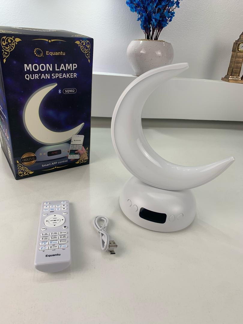 مصباح القمر الملوّن SQ902 مع تلاوة القرآن دمج فريد بين التكنولوجيا والروحانية، مصباح القمر الملوّن يمنحك إضاءة مريحة مع خاصية الأذان وتلاوة القرآن.المميزات:إضاءة RGB متعددة الألوان: تحكم ذكي بـ 256 لونًا مع تزامن إضاءة مع الموسيقى.إضاءة هادئة مثل ضوء القمر.خاصية الأذان: تحديد الموقع وضبط أوقات الأذان تلقائيًا أو يدويًا.وظيفة تعليم القرآن: تسهّل الاستماع والحفظ.