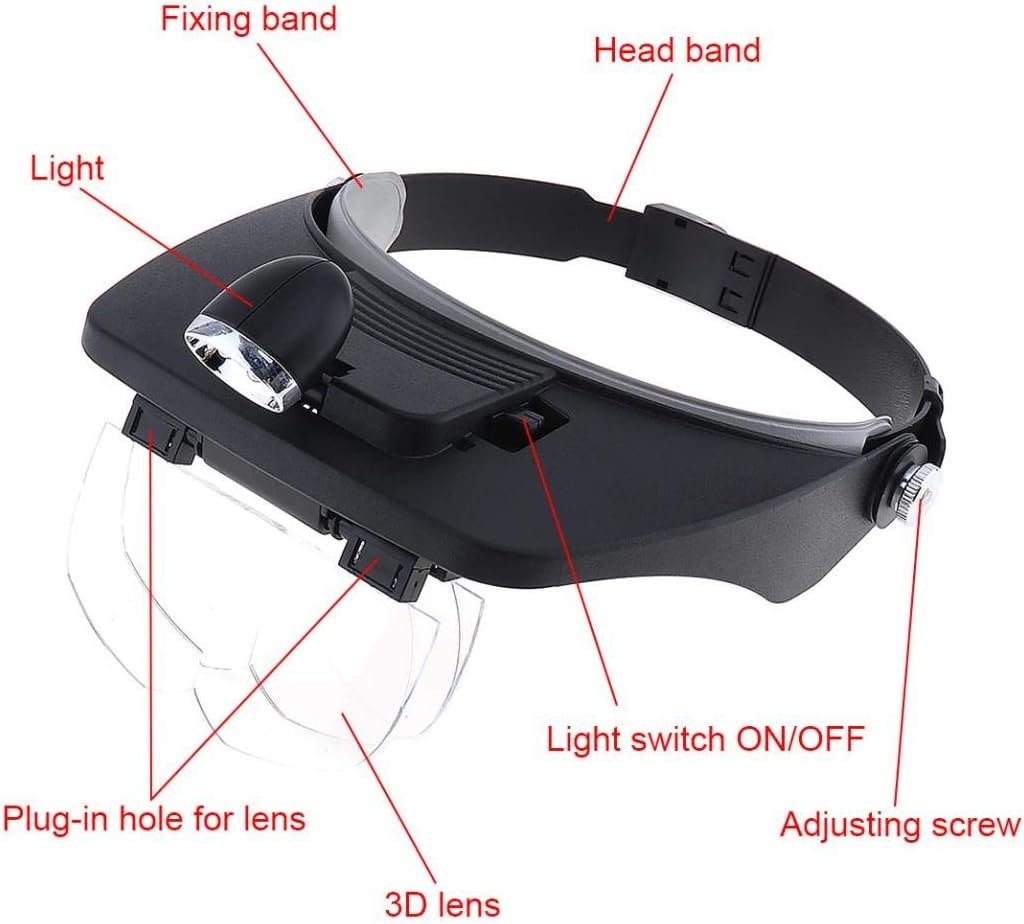 🔍 عدسة رأس مكبرة مع إضاءة LED✨ الخصائص :عدسة أمامية قابلة للتعديل.تحتوي على 4 عدسات قابلة للفك بأحجام تكبير مختلفة.إمكانية تحريك الدعامة للأعلى أو الأسفل بزاوية 45°، وتحريك الضوء يمينًا أو يسارًا بزاوية 25°.تعمل ببطاريتين صغيرتين AAA رقم 7 سهلة التبديل.مثالية للقراءة والأعمال الدقيقة مثل التصليحات، الأشغال اليدوية، أو الإلكترونيات.مناسبة لجميع مقاسات الرأس.⚙️ المواصفات التقنية :تكبير العدسات : 1.2X – 1.8X – 2.5X – 3.5Xإضاءة LED : قطعتانمصدر الطاقة : 2 بطاريات AAA رقم 7محيط الرأس : قابل للتعديلمادة العدسات : أكريليك عالي الجودةمادة الإطار : بلاستيك صديق للبيئةاللون : أسود📦 محتوى العلبة :1 عدسة رأس مكبرة بإضاءة LED4 عدسات تكبير (1.2X – 1.8X – 2.5X – 3.5X)1 دليل استخدام👉 هذه الأداة مثالية للطلاب، الحرفيين، التقنيين، وصانعي المجوهرات… أي شخص يحتاج رؤية أوضح في التفاصيل الدقيقة 👌