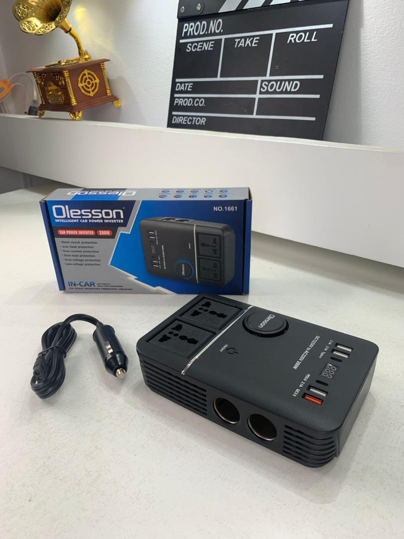 Onduleur de voiture USB Type-C Olesson 1661 220V/200W – محول التيار الكهربائي في السيارة