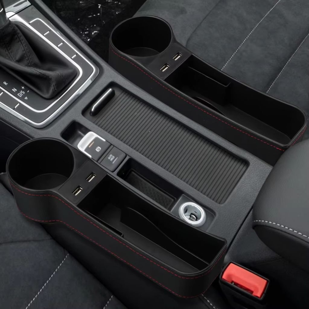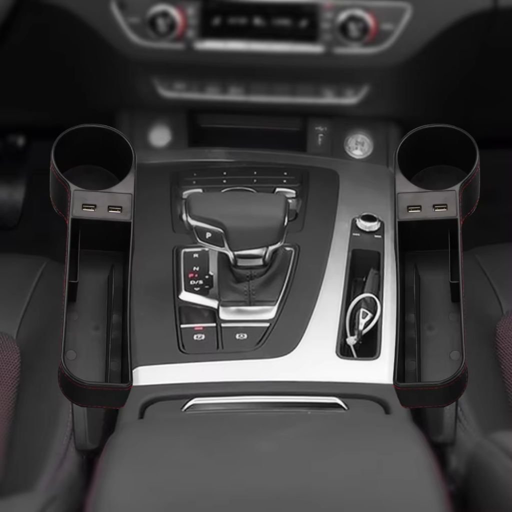 Organisateur Latéral de Console avec Chargeur USB et Porte-Gobelet – منظم جانبي لسيارة مع شاحن USB وحامل أكواب