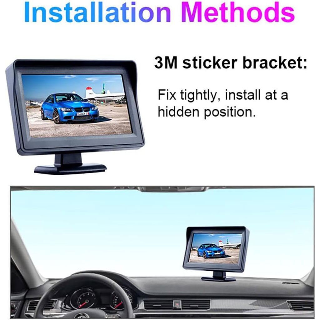 كاميرا خلفية بزاوية واسعة للسيارات – وظيفة الركن – رؤية ليليةعدسة زجاجية صلبة مقاومة للصدمات مع تصوير ثابت.تحسينات واضحة في الدقة، الألوان، الرؤية الليلية، ثبات الإشارة والعزل ضد الماء.تصميم محكم الإغلاق بالكامل ضد الرطوبة والضباب.سهلة التركيب ومتينة لتحسين أمان القيادة.شاشة TFT مقاس 4.3 بوصة بنسبة عرض 16:9 ودقة 480×272.متوافقة مع أنظمة PAL وNTSC.مزودة بواقي شمس للرؤية الواضحة في النهار.قاعدة لاصقة قابلة للتعديل 180° ومنطقتي إدخال فيديو V1/V2 (الأولوية لـ V2).تعمل تلقائياً عند تشغيل السيارة لتفادي الحوادث عند الرجوع للخلف.متوافقة مع أجهزة DVD وVCD وأجهزة الاستقبال ومعظم شاشات TFT.مزودة بشريحة ذكية لتشغيل الشاشة تلقائياً عند الحاجة لتفادي الاصطدام بالأطفال أو المارة أو الحيوانات