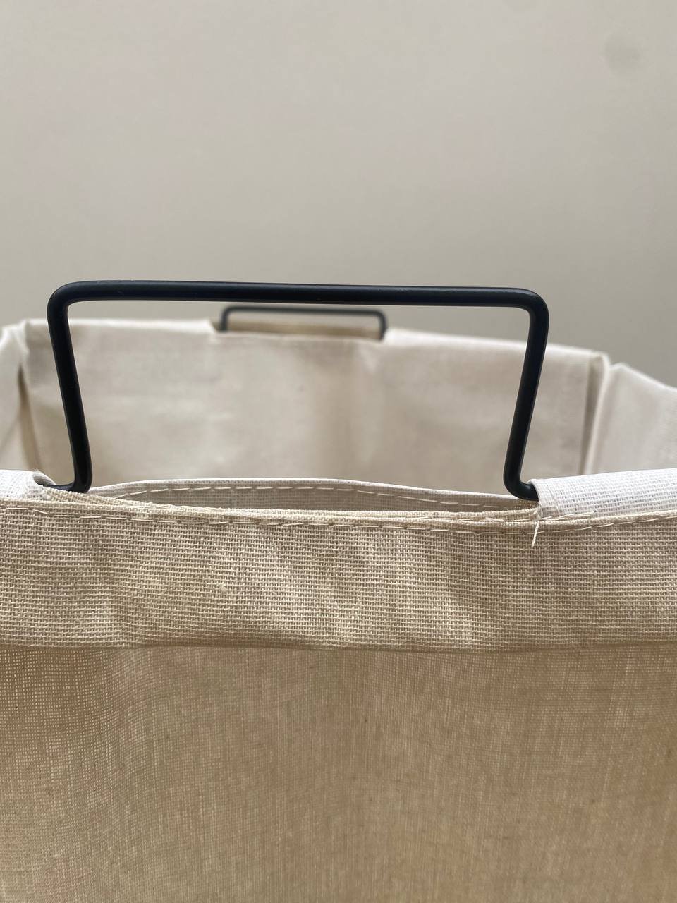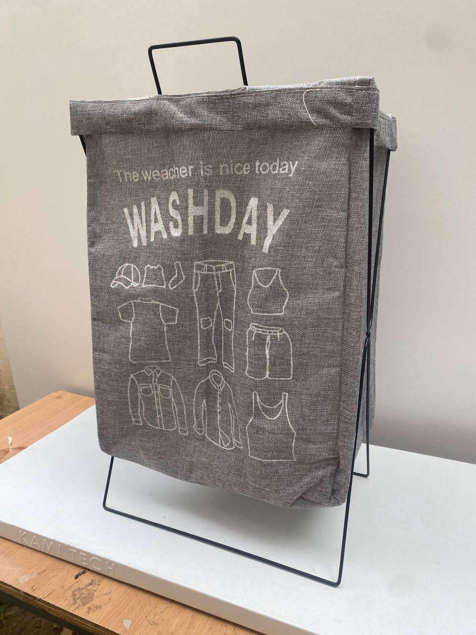 سلة غسيل أنيقةتصميم يجمع بين العملية والمظهر الجذاب.إطار معدني متين يحافظ على الملابس ويحمي من الفوضى.مزودة بمقبض معدني علوي لسهولة الحمل.مزخرفة بعبارة “Laundry Day” لإضفاء لمسة مرحة على تنظيم الملابس
