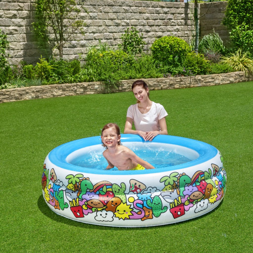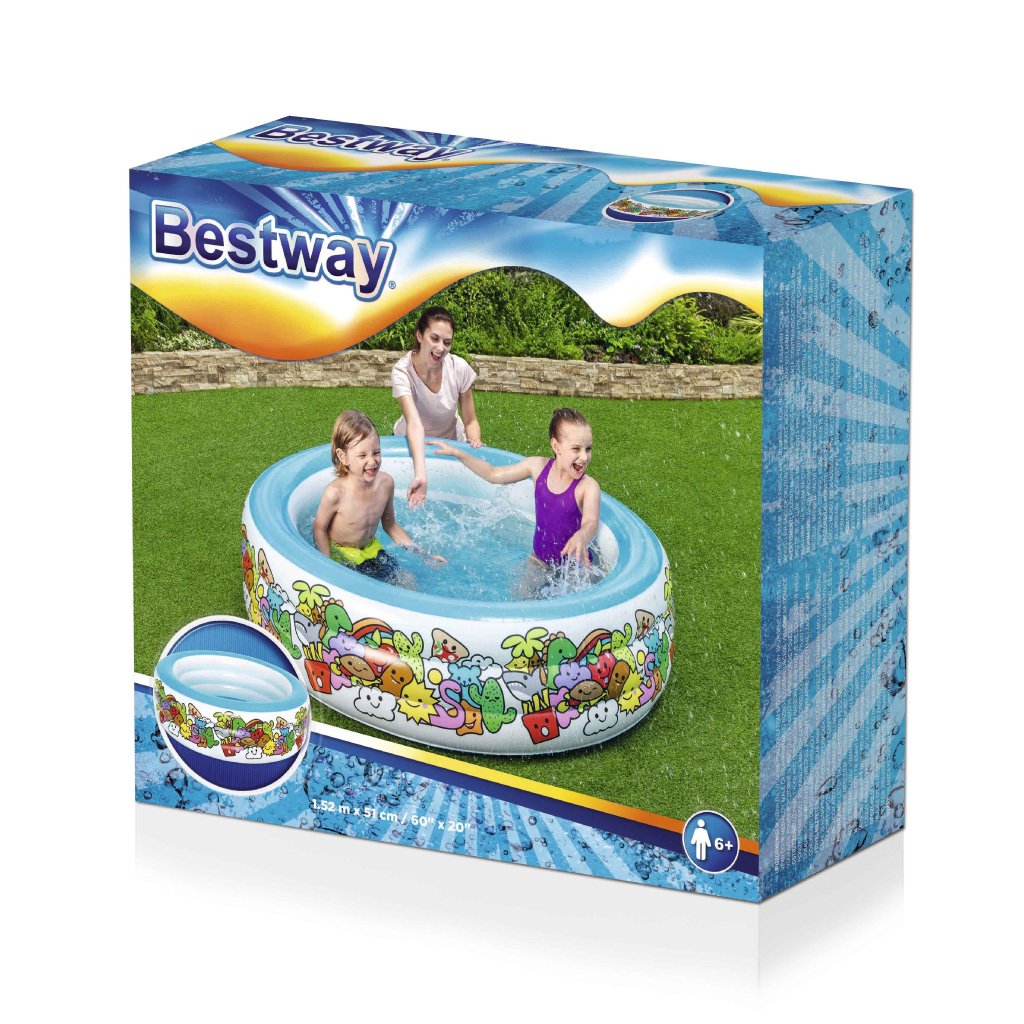 حمام سباحة دائري قابل للنفخ 152 × 51 سم – Bestway 51121مناسب للأطفال بعمر 6 سنوات فأكثر.تصميم بثلاث حلقات قابلة للنفخ لمزيد من الثبات.قاعدة لينة ومريحة – مصنوع من PVC متين.السعة: 400 لتر.حجم العبوة: 30 × 35 × 9 سم – الوزن: 2.5 كجم.المرفقات: قطعة إصلاح.