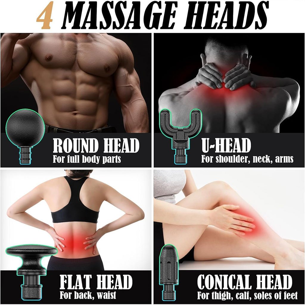 Pistolet de massage poignée allongée avec 4 têtes, 3 modes et 6 niveaux – جهاز تدليك الجسم