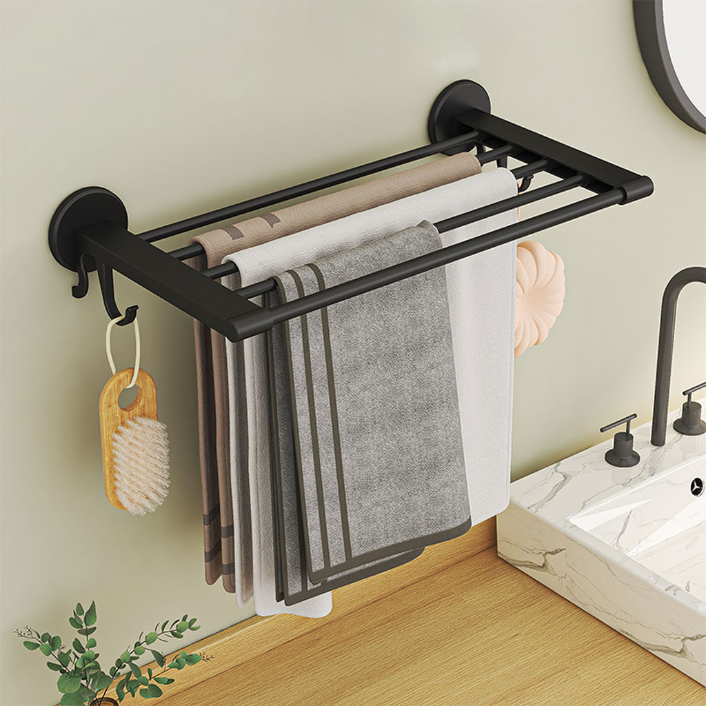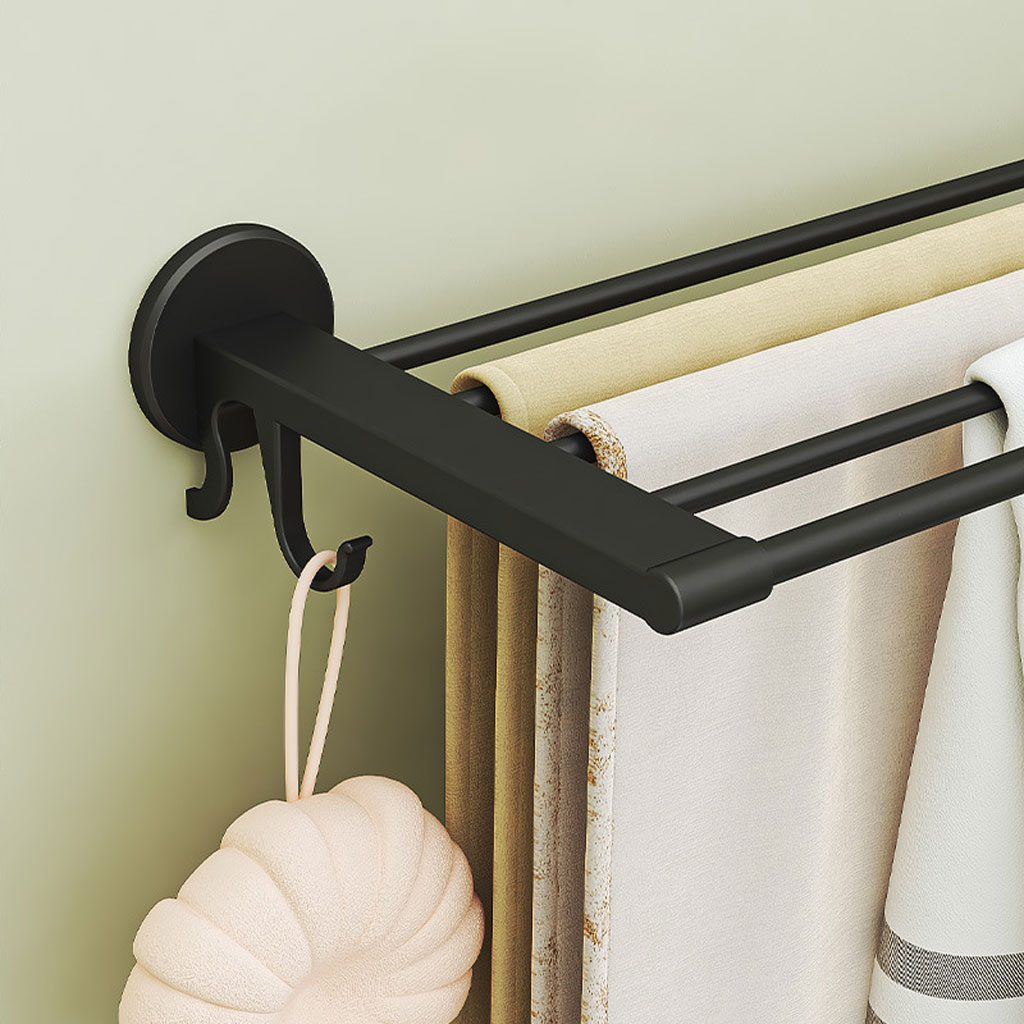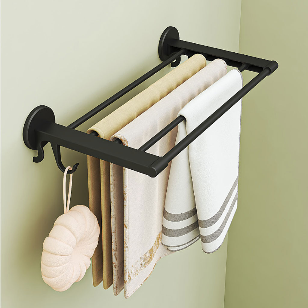 ✅ تثبيت بدون حفر : يثبت بسهولة على الجدار دون الحاجة إلى الحفر، مما يحافظ على الأسطح.✅ تصميم قابل للطي : يمكن طيه عند عدم الاستعمال لتوفير المساحة.✅ مادة عالية الجودة : مصنوع من الألومنيوم المقاوم للصدأ والماء، لضمان المتانة وطول العمر.✅ خطافات مدمجة : يحتوي على خطافات ثابتة ومتحركة لتعليق المناشف، الأرواب، والإكسسوارات الأخرى.✅ تصميم عصري : لمسة أنيقة باللون الأسود تناسب مختلف ديكورات الحمام.🔹 لماذا تختار هذا المنتج ؟