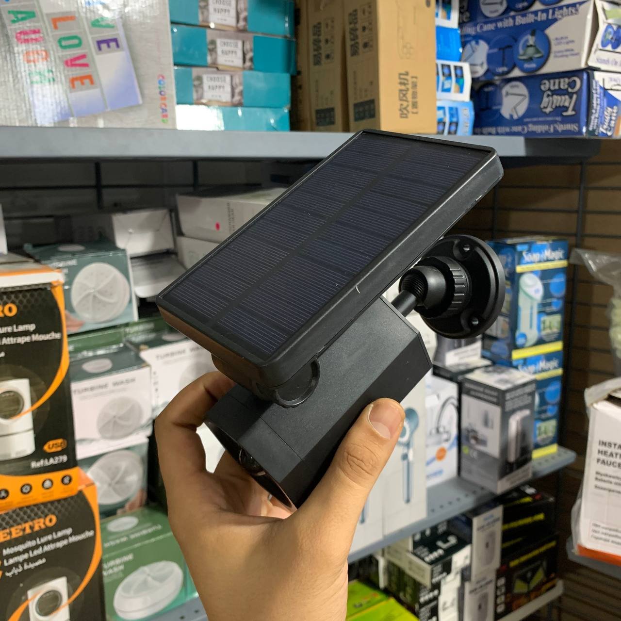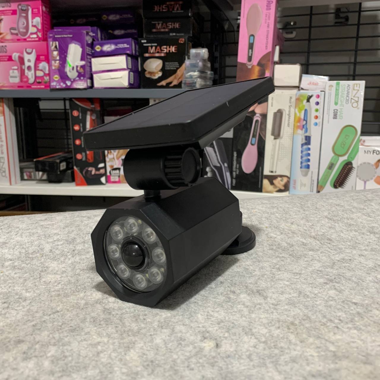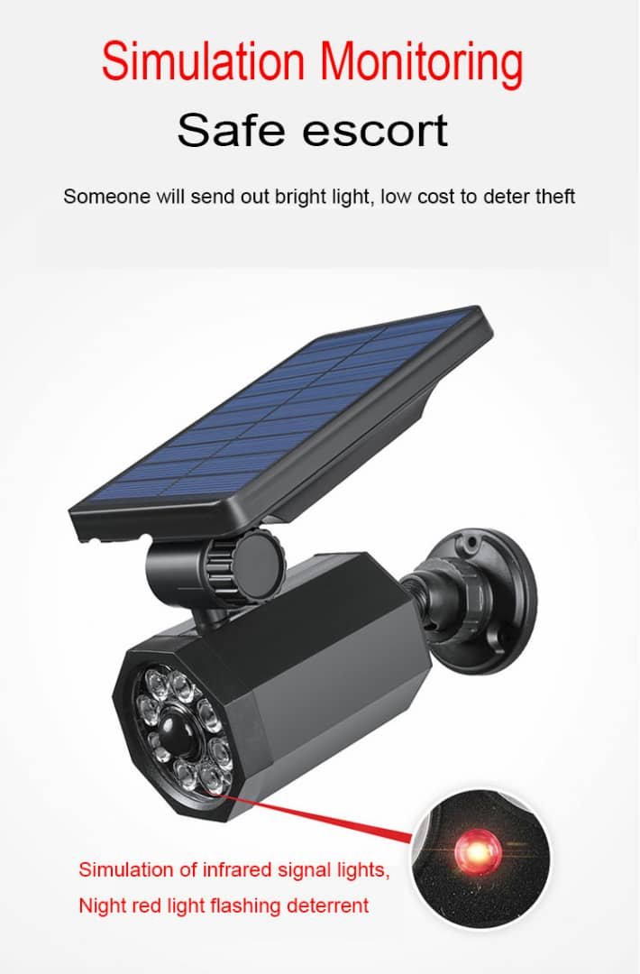 مصباح شمسي ذكي مضاد للسرقة – بتقنية LEDمزوّد بلوح شمسي قوي 5.5V/300mA وبطارية ليثيوم 1800mAh لإضاءة تدوم 8-10 ساعات.إضاءة قوية 360° بدون زوايا ميتة مع حماية ضد الماء بمعيار IP65.محاكاة ضوء تحذيري ليلي أحمر وامض لردع اللصوص بتكلفة منخفضة.إضاءة تلقائية عند حلول الليل بنفس قوة أعمدة الإنارة.تصميم مدمج وكفاءة عالية مع سرعة شحن أكبر بفضل اللوح الشمسي المطوّر.مصنوع من مواد ABS + PC مقاومة للعوامل الخارجية.
