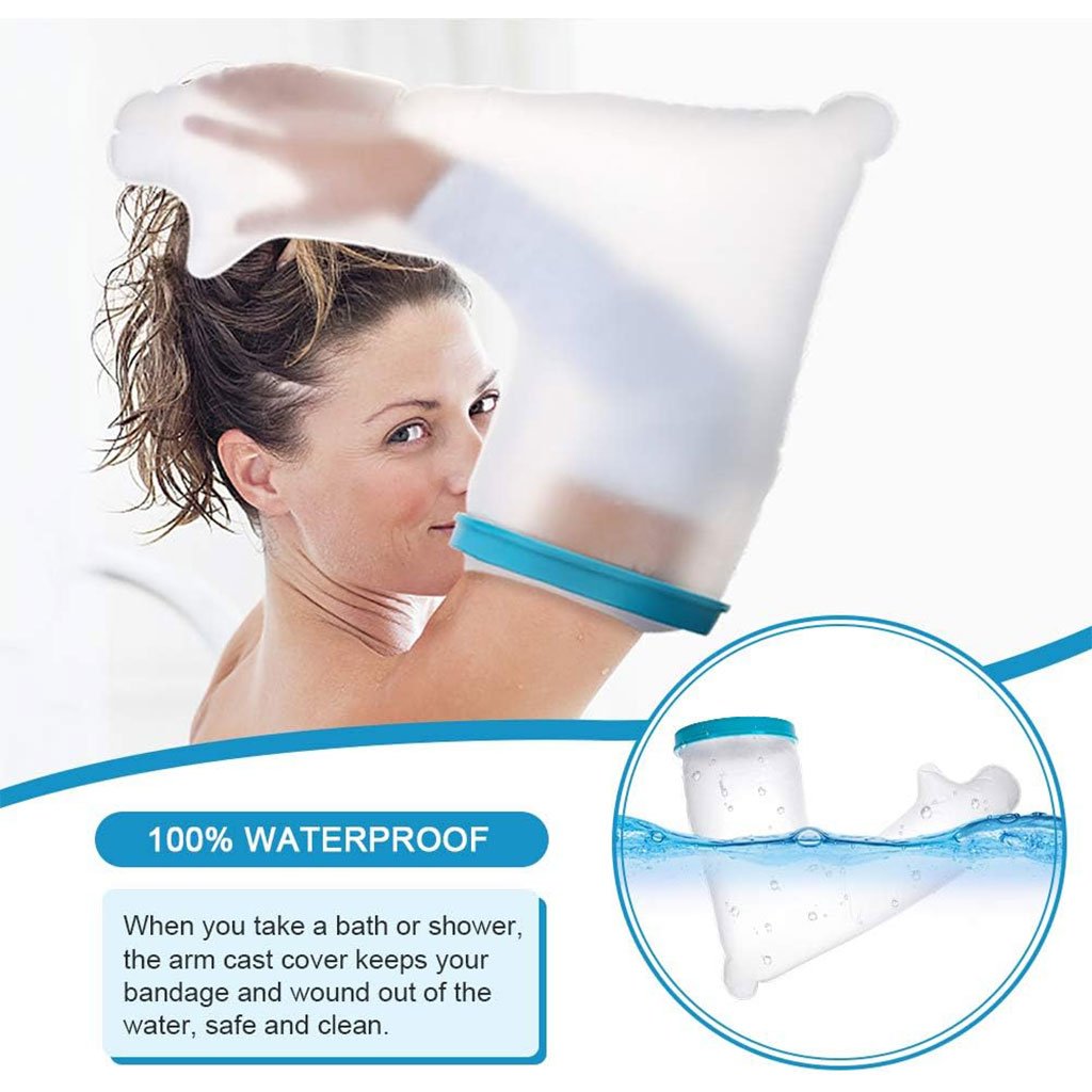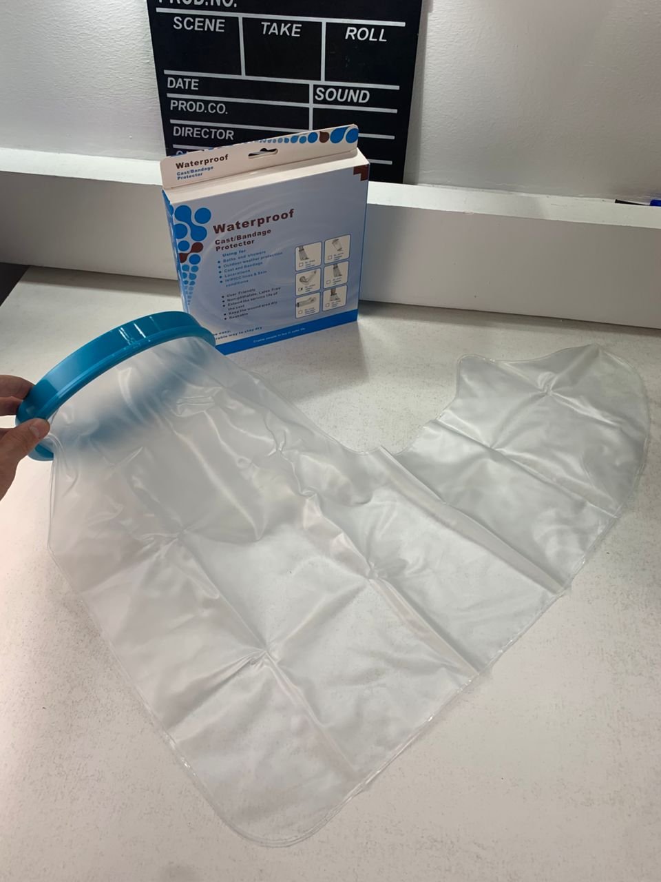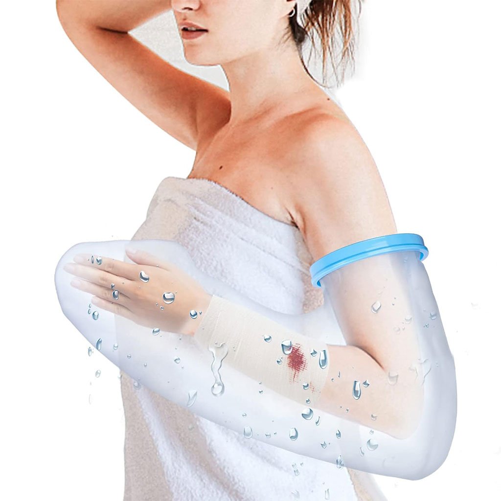 غطاء واقٍ للجبيرة / الجص للذراع – مقاوم للماء وخفيف الوزن🔹 غطاء ذراع خفيف الوزن : كان المطاط في الطراز القديم يترك آثارًا على الجلد بسهولة. أما الغطاء الجديد المقاوم للماء فهو مصنوع من مطاط أكثر مرونة لا يترك أي أثر على البشرة ولا يلتصق بها. الغشاء المرن والمحكم الإغلاق لا يعيق الدورة الدموية.🔹 حماية فعالة ضد تسرب الماء : مثالي للاستحمام والاغتسال، وخصوصًا للأشخاص الذين يتعافون من عملية جراحية أو يعانون من مشاكل جلدية. يحمي المنطقة المصابة من البلل. يُوصى به أثناء الاستحمام أو الأنشطة الخارجية بعد إصابة، عملية جراحية، حادث، أو في حالات مثل الطفح الجلدي، الحروق، مشاكل الجلد أو الجروح.🔹 غطاء جبيرة مقاوم للماء للذراع : بطول ‎60 سم، يغطي الذراع بالكامل، مما يجعله مثاليًا لحماية الأصابع والذراع. مصنوع من مادة خفيفة، صحية وقابلة للغسل، لا تلتصق بالذراع. الفتحة المركزية المرنة، التي يمكن أن تمتد حتى ‎15 سم قطرًا، واسعة بما يكفي لمرور الجبيرة، وفي الوقت نفسه محكمة بما يكفي لمنع تسرب الماء.🔹 صديق للبيئة وآمن : الغشاء مصنوع من سيليكون طبي عالي الجودة، والكم من PVC، وهو مادة مانعة للانزلاق لا تلتصق بالذراع. خالٍ من اللاتكس، عديم الرائحة والطعم، سهل الغسل. الفتحة المرنة الناعمة تجعل ارتداءه وخلعه سهلاً وغير مؤلم.📏 الأبعاد : ‎60 × 15 سم