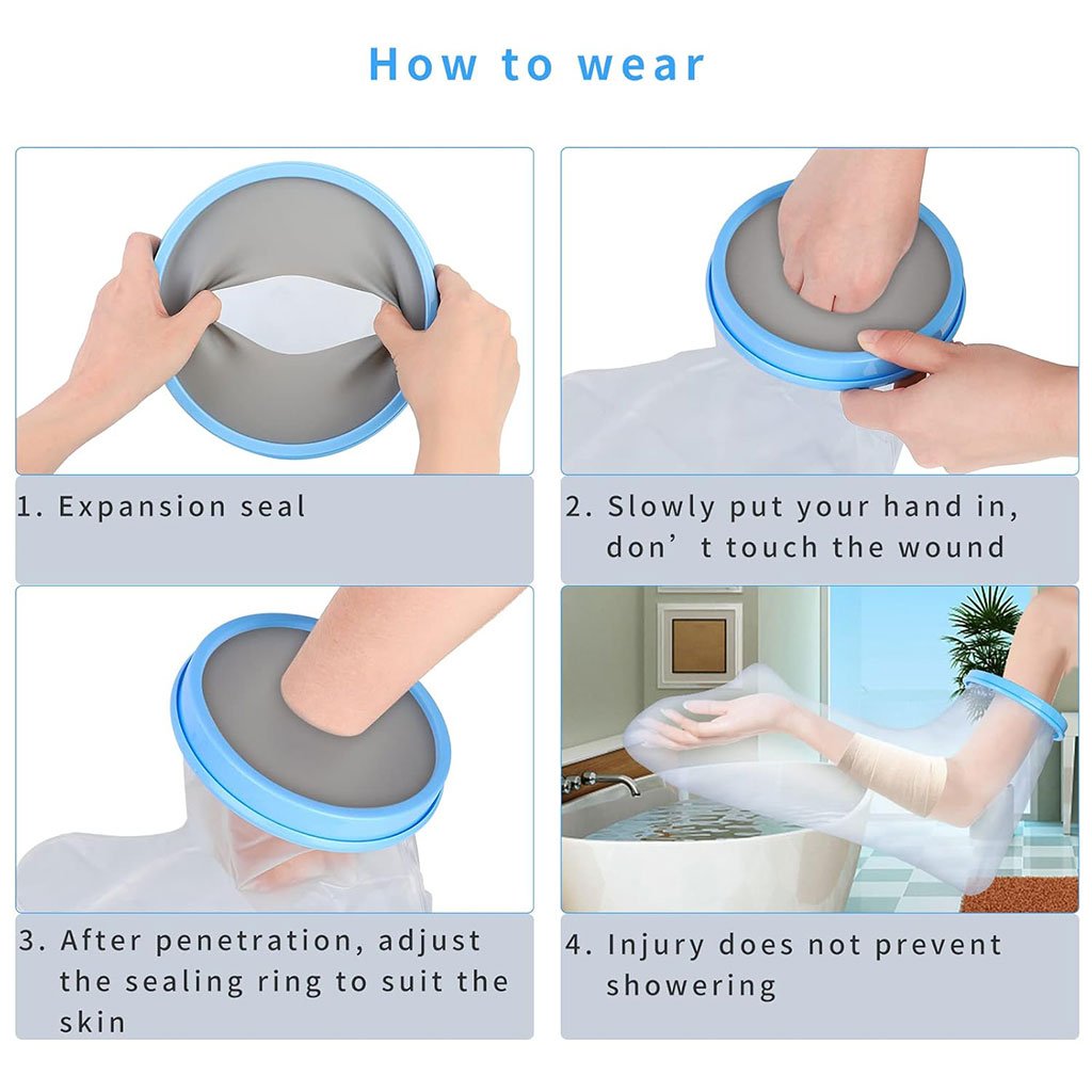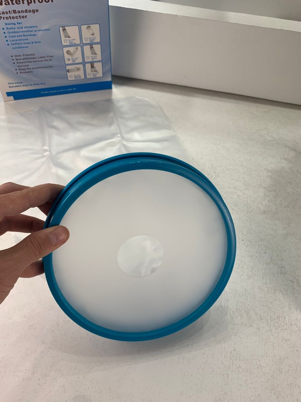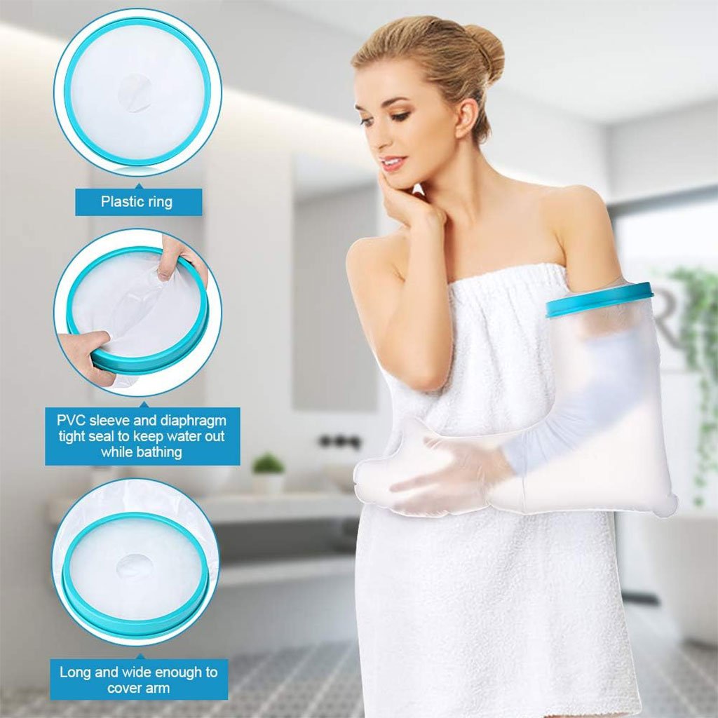 غطاء واقٍ للجبيرة / الجص للذراع – مقاوم للماء وخفيف الوزن🔹 غطاء ذراع خفيف الوزن : كان المطاط في الطراز القديم يترك آثارًا على الجلد بسهولة. أما الغطاء الجديد المقاوم للماء فهو مصنوع من مطاط أكثر مرونة لا يترك أي أثر على البشرة ولا يلتصق بها. الغشاء المرن والمحكم الإغلاق لا يعيق الدورة الدموية.🔹 حماية فعالة ضد تسرب الماء : مثالي للاستحمام والاغتسال، وخصوصًا للأشخاص الذين يتعافون من عملية جراحية أو يعانون من مشاكل جلدية. يحمي المنطقة المصابة من البلل. يُوصى به أثناء الاستحمام أو الأنشطة الخارجية بعد إصابة، عملية جراحية، حادث، أو في حالات مثل الطفح الجلدي، الحروق، مشاكل الجلد أو الجروح.🔹 غطاء جبيرة مقاوم للماء للذراع : بطول ‎60 سم، يغطي الذراع بالكامل، مما يجعله مثاليًا لحماية الأصابع والذراع. مصنوع من مادة خفيفة، صحية وقابلة للغسل، لا تلتصق بالذراع. الفتحة المركزية المرنة، التي يمكن أن تمتد حتى ‎15 سم قطرًا، واسعة بما يكفي لمرور الجبيرة، وفي الوقت نفسه محكمة بما يكفي لمنع تسرب الماء.🔹 صديق للبيئة وآمن : الغشاء مصنوع من سيليكون طبي عالي الجودة، والكم من PVC، وهو مادة مانعة للانزلاق لا تلتصق بالذراع. خالٍ من اللاتكس، عديم الرائحة والطعم، سهل الغسل. الفتحة المرنة الناعمة تجعل ارتداءه وخلعه سهلاً وغير مؤلم.📏 الأبعاد : ‎60 × 15 سم
