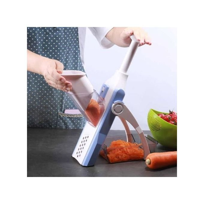 آلة تقطيع الخضار متعددة الوظائف (5 أوضاع) 🥗أداء قوي: مصنوعة من الفولاذ المقاوم للصدأ لمتانة طويلة الأمد.حجم مناسب: 32×12×6 سم مع وزن 650غ فقط.خمس أوضاع للتقطيع: للحصول على شرائح متنوعة بسرعة وسهولة.
