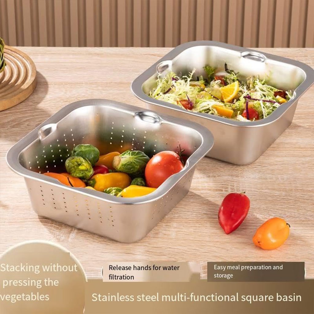 🥕 مبشرة وخلاط تقطيع متعددة الوظائف من الفولاذ المقاوم للصدأ🔪 تصميم متعدد الوظائف تجمع هذه المبشرة المصنوعة من الستانلس ستيل بين التقطيع، البشر، والتصفية في أداة مطبخ واحدة مدمجة، مما يجعل تحضير الطعام أسرع وأسهل لمختلف الوصفات اليومية.🛡️ هيكل من الفولاذ المقاوم للصدأ مصنوعة من فولاذ مقاوم للصدأ عالي الجودة، مقاوم للصدأ والتآكل، مع شفرات حادة تدوم طويلًا وتضمن أداءً ثابتًا وفعالًا مع كل استخدام.🤲 مريحة وموفرة للمساحة تصميم خفيف الوزن وصغير الحجم يراعي راحة المستخدم، مثالي للمطابخ الصغيرة وسهل التخزين دون أن يشغل مساحة كبيرة.🍎 أداة مطبخ متعددة الاستخدامات مثالية لـ:بشر الخضروات 🥒بشر الجبن 🧀تقطيع الفواكه 🍓تصفية الخضروات والفواكه بعد الغسلكل ذلك باستخدام أداة واحدة فقط!🧺 وعاء تصفية مدمج مزودة بوعاء تصفية مدمج يسمح بتصفية الماء بكفاءة بعد التقطيع أو البشر، مما يحافظ على نظافة وسرعة العمل في المطبخ.📏 مواصفات المنتج:📐 الأبعاد: 24 × 24 × 8 سم🧱 المادة: فولاذ مقاوم للصدأ🧺 وعاء تصفية مدمج🎯 استخدام متعدد وسهل التنظيف