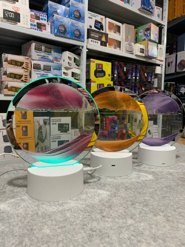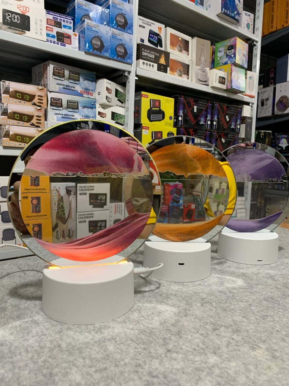 مصباح رمل متحرك (إضاءة ليلية ثلاثية الأبعاد):جودة عالية: زجاج شفاف بدون رصاص بألوان زاهية ورمل مصفى بعناية مع تأثير ثلاثي الأبعاد مميز.تصميم فني مع إضاءة: يجمع بين فن الرمال المتحركة ووظيفة الإضاءة ليكون قطعة ديكور رائعة.تحكم عن بعد ولمس: مزود بجهاز تحكم لتغيير الألوان والسطوع، بالإضافة إلى مفتاح لمس للتحكم المباشر.دوران 360 درجة: يمكنك قلب اللوحة في أي وقت لتغيير شكل الرمال والصور المعروضة.تغيير ألوان RGB: إضاءة قابلة لتغيير اللون بالكامل لإضفاء جو مميز على المكان.المواصفات:النوع: مصباح طاولة/مصباح ليليالشكل: دائريالألوان: أزرق، أسود، برتقالي، أخضر، أحمر، بنفسجيالحجم: 16 × 20 سم، قاعدة قطرها 10 سمالقدرة: 3 واتالتغذية: USB أو بطاريات محتويات العبوة: مصباح رمل متحرك + جهاز تحكم + كابل USB