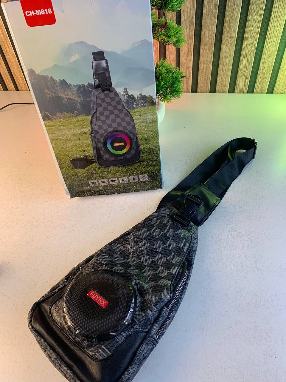 Sac à Bandoulière avec Haut Parleur Bluetooth Rechargeable RGB CH-M818 – حقيبة رجالية مع مكبر صوت بلوتوث مدمج