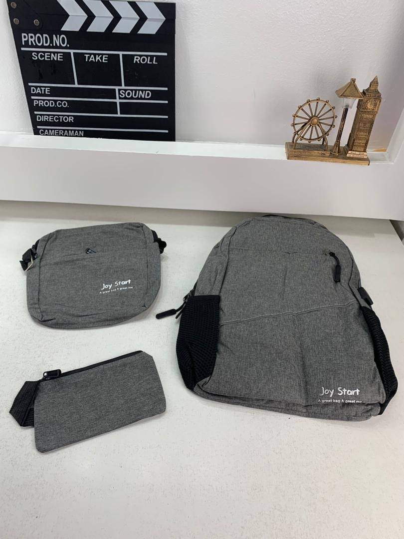 Sac à dos homme avec sac bandoulière et trousse 3en1 gris 2755-8 – محفظة ظهر رجالية 3 قطع رمادي