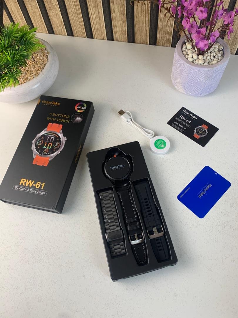 استمتع بمزيج مثالي من الأناقة، المغامرة، والتكنولوجيا مع ساعة Haino Teko RW-61 الذكية. بتصميمها المتين وشاشتها AMOLED المذهلة، وخاصية المكالمات عبر البلوتوث، تصبح هذه الساعة رفيقك المثالي في كل لحظة — سواء كنت في الصالة الرياضية، في العمل أو في مغامرة جديدة! 🏋️‍♂️📞🌄💎 المميزات الرئيسية :🖥️ شاشة AMOLED فائقة الوضوح – عرض ديناميكي وألوان زاهية لتجربة مشاهدة مريحة وسلسة.🔦 5 أزرار متعددة الوظائف مع مصباح مدمج – سهولة في الاستخدام وإضاءة قوية للحالات الليلية أو الطارئة.📞 مكالمات بلوتوث مباشرة – أجرِ واستقبل مكالماتك بسهولة من معصمك دون الحاجة للهاتف.⌚ 3 أساور قابلة للتبديل –🏃‍♂️ سيليكون لمظهر رياضي👔 جلد لمظهر كلاسيكي💼 فولاذ مقاوم للصدأ لمظهر فاخر❤️ مراقبة صحية شاملة – تتبع الخطوات، السعرات، معدل ضربات القلب والمزيد.💪 تصميم قوي وأنيق – هيكل متين بتصميم عصري يلائم محبّي المغامرات والأنشطة الخارجية.🎨 واجهات متعددة – اختر بين تصاميم رقمية أو كلاسيكية لتناسب مزاجك وإطلالتك.⚡ ساعة واحدة… لكل الأوقات! متينة، أنيقة، ومجهزة بكل ما تحتاجه لمواكبة نمط حياتك العصري. 🌟