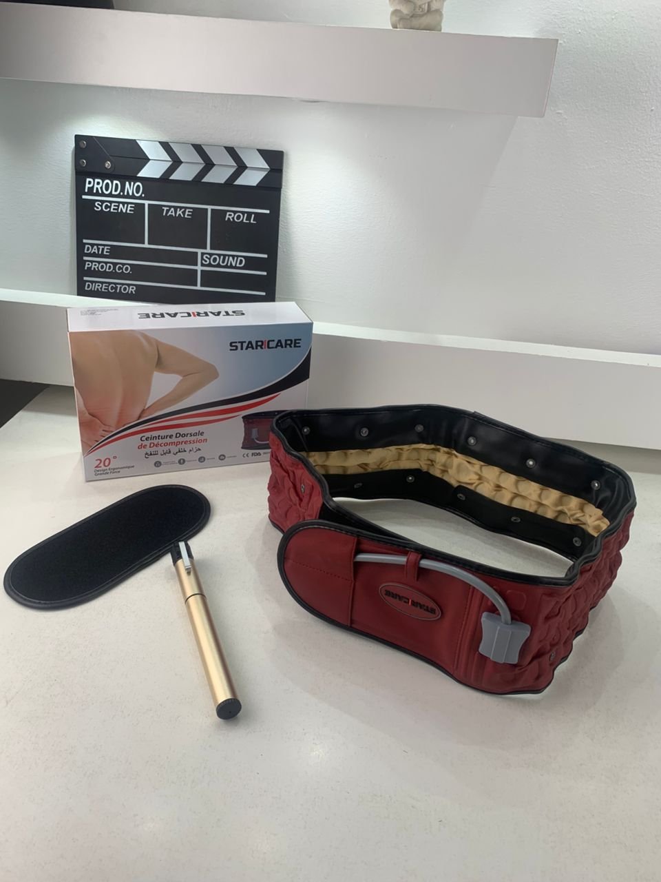 🌀 حزام شدّ وفك الضغط القَطَني (Ceinture de Traction Lombaire)✨ المميزات :【تخفيف الضغط القَطَني】 : بفضل تقنية الشدّ الهوائي، يقلّل من الحمل على الأربطة ويمنح راحة للغضروف المتضرر. مثالي لآلام أسفل الظهر، عرق النسا، التهاب المفاصل، وإصابات الأنسجة الرخوة.أعمدة شدّ هوائية : عند ضخّ الهواء، تتمدد الأعمدة من الأعلى إلى الأسفل لفتح المسافة بين الفقرات وتخفيف الضغط العصبي.【تصميم مريح (Ergonomique)】 : مزوّد بعدّة أعمدة هوائية على الظهر، بتصميم مضاد لـ “C” لتوفير شدّ قوي وحماية أوسع للخصر.【تسكين الألم】 : يساعد على تمديد عضلات أسفل الظهر المتشنجة، ويخفف الألم والتيبّس.📋 الخصائص :الأعمدة الهوائية القابلة للتمدد توفر دعماً آمناً للفقرات القَطَنية.علاج فك الضغط دون أي تدخل جراحي أو أدوية.الحزام قابل للنفخ بالهواء وخفيف جداً.عملي وسهل الاستخدام في أي وقت وأي مكان.يتمدد عمودياً ليقوم بشدّ لطيف لأسفل الظهر، مما يساعد على فكّ الضغط عن الغضاريف والعضلات.📏 المواصفات :الاسم : حزام شدّ وفك الضغط القَطَنيالألوان المتوفرة : أبيض، أزرق، بيج، أحمرالمواد : TPU + جلد + قطن📦 محتويات العلبة :1 × حزام شدّ قطني1 × مضخة هوائية يدوية1 × حزام تمديد إضافي1 × دليل الاستخدام