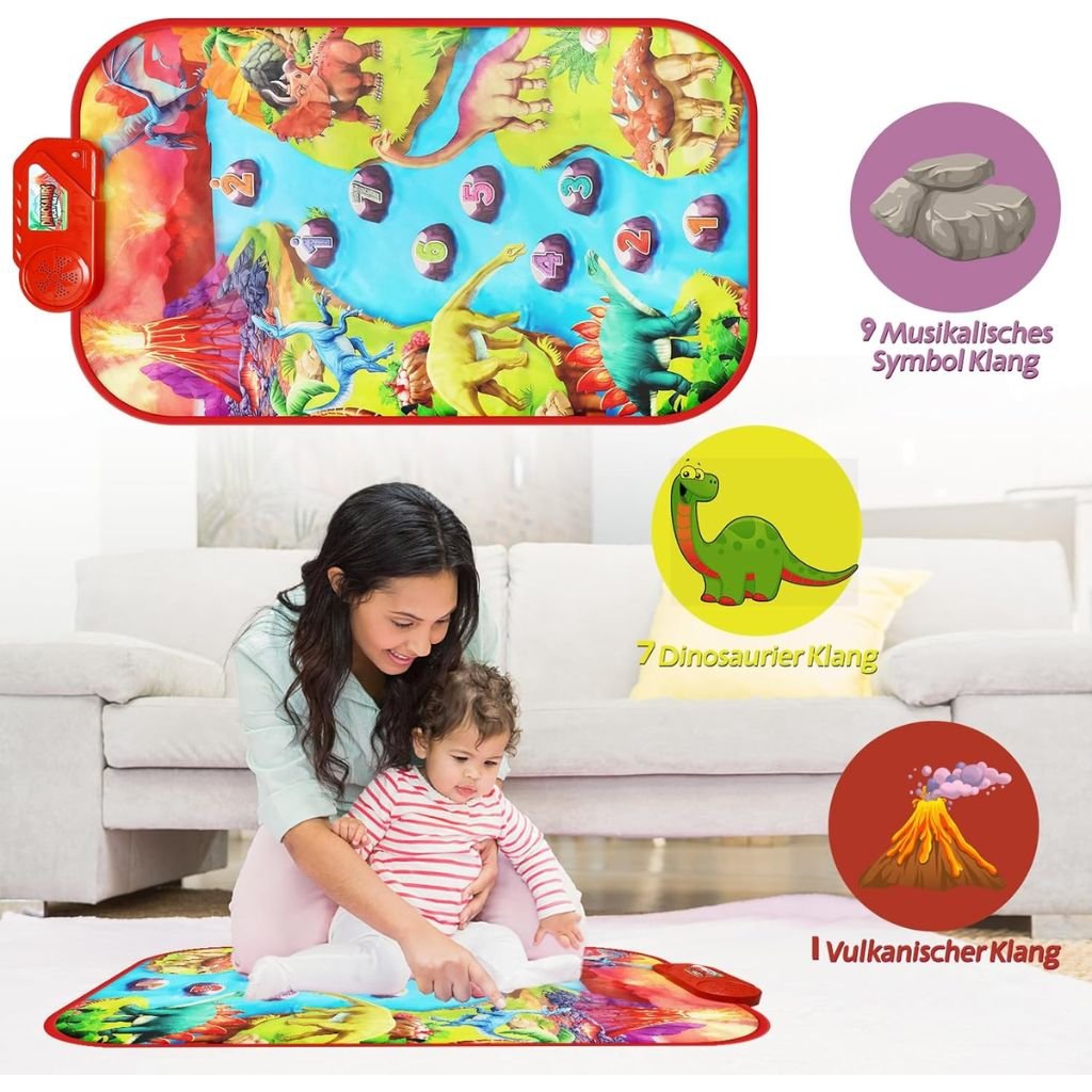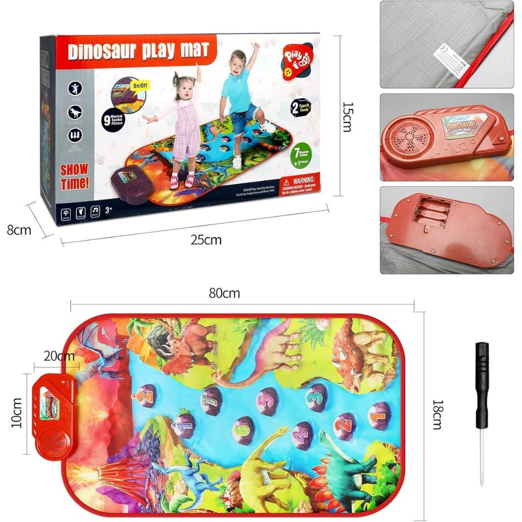 لتطور الموسيقي: تُمكّن هذه السجادة التفاعلية الأطفال من اكتشاف الموسيقى بالضغط على مفاتيح البيانو، مما يُساعد على تطوير حسّ الإيقاع لديهم وتنسيق حركاتهم.تصميم جذاب: مُزينة بأنماط ديناصورات ملونة، تجذب انتباه الأطفال الصغار وتجعل التعلم ممتعًا وجذابًا.مواد عالية الجودة: مصنوعة من قماش ناعم ومتين، السجادة مريحة للأيدي والأقدام الصغيرة، كما أنها مقاومة للارتداء اليومي.سهلة التخزين: خفيفة الوزن وقابلة للطي، يُمكن تخزينها بسهولة بعد الاستخدام، مثالية للمساحات الصغيرة أو للأنشطة الخارجية.سلامة الأطفال: مصممة بدون حواف حادة ومصنوعة من مواد غير سامة، تضمن استخدامًا آمنًا للأطفال.امنح طفلك تجربة موسيقية ممتعة وتعليمية مع سجادة البيانو هذه – مثالية لتعزيز الإبداع وغرس حب الموسيقى منذ الصغر.