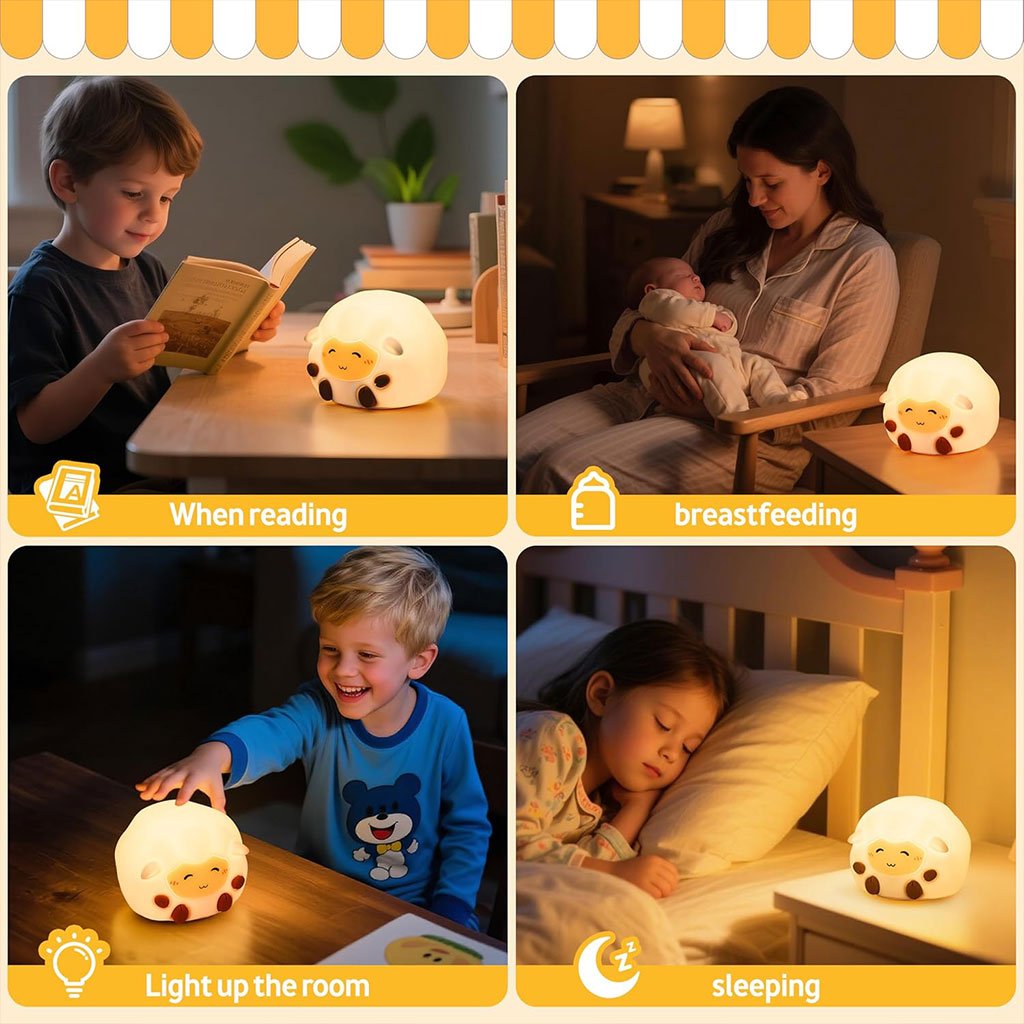 Veilleuse Mouton pour Enfants Lampe LED souple et rechargeable – مصباح سيليكون لغرف الأطفال