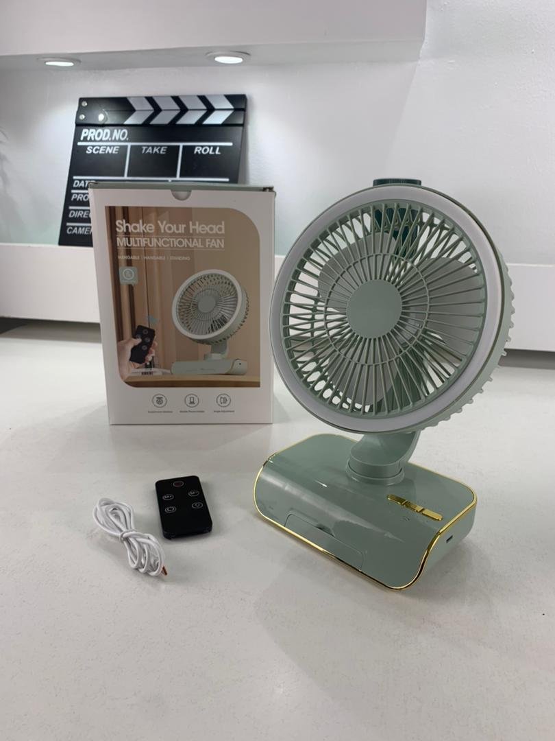 Ventilateur de Bureau Rechargeable Rotatif avec Lumière LED – مروحة مكتب قابلة للشحن